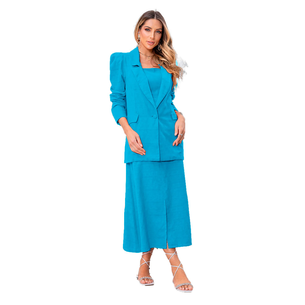 Conjunto feminino confeccionado em linho, um tecido natural com ótima respirabilidade; O conjunto em linho é a peça ideal para um visual fashion e que as antenadas em moda adoram, principalmente durante o dia; Invista!<br><br>. <br><br>Produto : Conjunto Linho Saia Azul <br>Categoria:Conjunto<br>Cor: Azul <br>Contém 01 Top + 01 Saia + Blazer <br>Tecido: Linho <br>Composição : 11% viscose /43% poliester / 31% algodão/ 15% linho <br>Peso :300 g<br>Gênero: Feminino<br>Marca: Vértice<br>.<br><br><br><br>Medidas<br>P - Busto até 90 cm l Cintura até 71 cm l Quadril até 99 Cm.<br>M - Busto até 96 cm l Cintura até 77 cm l Quadril até 102 cm.<br>G - Busto até 102 cm l Cintura 83 cm l Quadril 111 cm.<br>GG - Busto 108 cm l Cintura até 89 cm l Quadril até 117 cm.<br>EGG - Busto até 114 cm l Cintura até 95 cm l Quadril até 123 cm.<br>