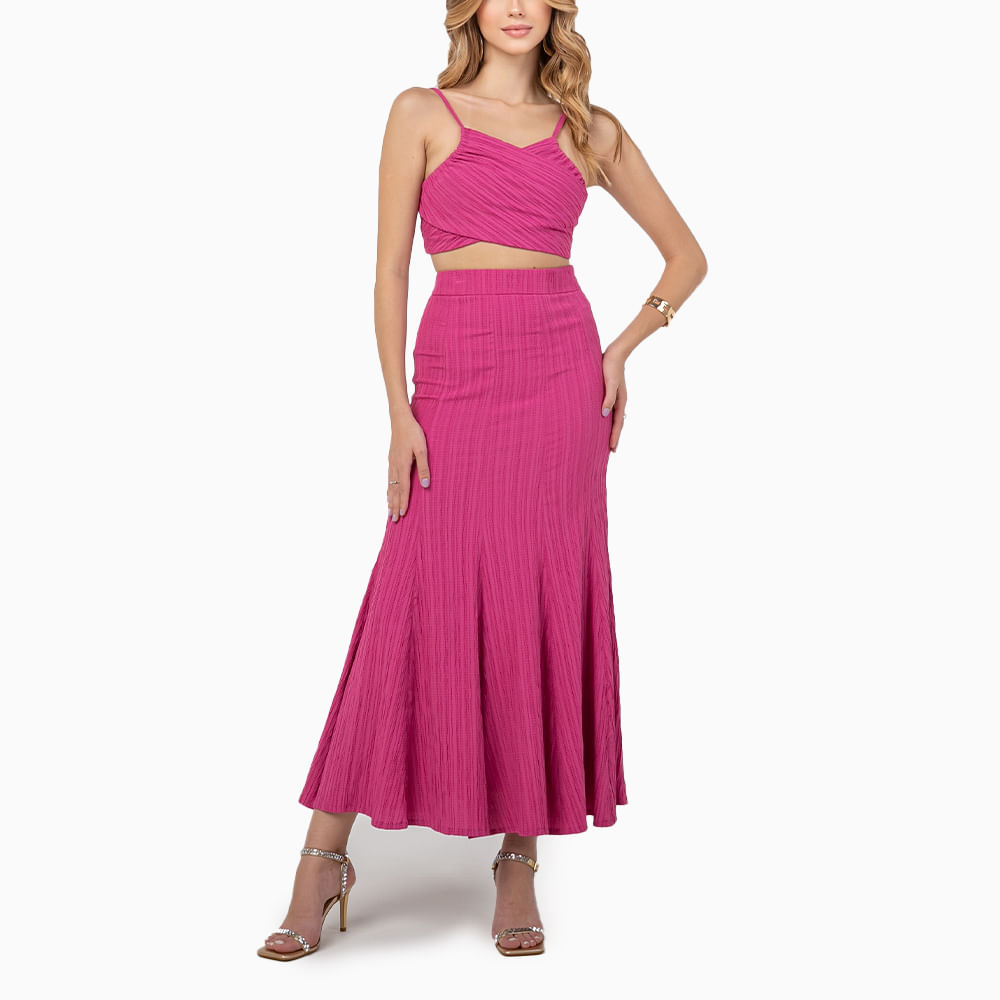 Conjunto feminino em tecido plissado confeccionado em material de poliéster, viscose e elastano; O modelo conta com parte superior em um cropped com decote coração transpassado e alças finas; Enquanro a parte inferior do conjunto possui saia midi com caimento assimétrico em duas camadas de tecido; Os conjuntos femininos são sinônimos de praticidade e podem ser usados em diversas ocasiões, do happy hour com os amigos às festas de final de ano; Versátil, aposte em um look com sandálias de tiras finas metalizadas e arremate com uma bolsa tiracolo colorida; Os tecidos plissados são a aposta da temporada por trazem volume e textura ao visual; Queridinho das trendsetter do momento, aposte neste conjunto;<br><br>.<br><br>Produto: Conjunto Midi Plissado Pink<br>Categoria: Conjunto <br>Cor: Pink<br>Manga: Sem Manga<br>Gola: Gola em V<br>Tecido: Plissado<br>Composição: 55 % Poliester /44% Viscose/1% Elastano<br>Peso :200 g<br>Gênero: Feminino<br>Marca: Vértice<br>.<br><br><br><br>Medidas.<br><br>P - Busto até 90 cm l Cintura até 71 cm l Quadril até 99 Cm.<br>M - Busto até 96 cm l Cintura até 77 cm l Quadril até 102 cm.<br>G - Busto até 102 cm l Cintura 83 cm l Quadril 111 cm.<br>GG - Busto 108 cm l Cintura até 89 cm l Quadril até 117 cm.<br>EGG - Busto até 114 cm l Cintura até 95 cm l Quadril até 123 cm.<br><br><br><br><br><br><br>