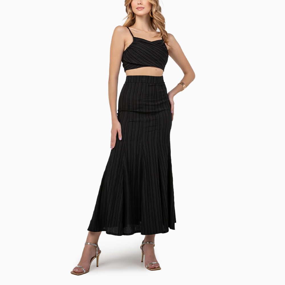 Conjunto feminino em tecido plissado confeccionado em material de poliéster, viscose e elastano; O modelo conta com parte superior em um cropped com decote coração transpassado e alças finas; Enquanro a parte inferior do conjunto possui saia midi com caimento assimétrico em duas camadas de tecido; Os conjuntos femininos são sinônimos de praticidade e podem ser usados em diversas ocasiões, do happy hour com os amigos às festas de final de ano; Versátil, aposte em um look com sandálias de tiras finas metalizadas e arremate com uma bolsa tiracolo colorida; Os tecidos plissados são a aposta da temporada por trazem volume e textura ao visual; Queridinho das trendsetter do momento, aposte neste conjunto;<br><br>.<br><br>Produto: Conjunto Midi Plissado Preto<br>Categoria: Conjunto <br>Cor: Preto<br>Manga: Sem Manga<br>Gola: Gola em V<br>Tecido: Plissado<br>Composição: 55 % Poliester /44% Viscose/1% Elastano<br>Peso :200 g<br>Gênero: Feminino<br>Marca: Vértice<br>.<br><br><br><br>Medidas.<br><br>P - Busto até 90 cm l Cintura até 71 cm l Quadril até 99 Cm.<br>M - Busto até 96 cm l Cintura até 77 cm l Quadril até 102 cm.<br>G - Busto até 102 cm l Cintura 83 cm l Quadril 111 cm.<br>GG - Busto 108 cm l Cintura até 89 cm l Quadril até 117 cm.<br>EGG - Busto até 114 cm l Cintura até 95 cm l Quadril até 123 cm.<br><br><br><br><br><br><br>