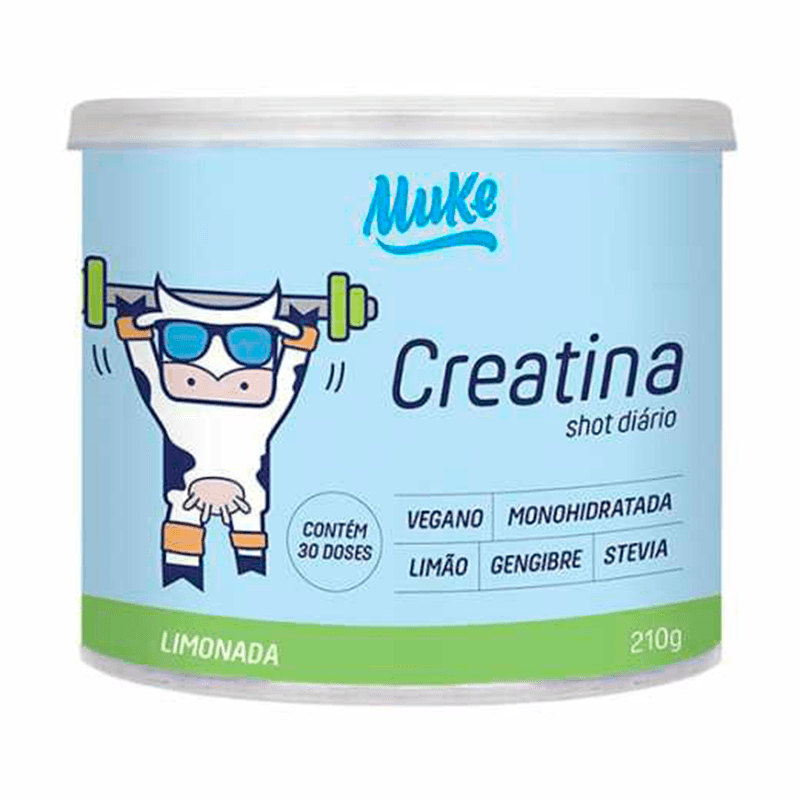 <p>A Creatina é um composto produzido naturalmente pelo nosso corpo, mais precisamente pelo fígado, rins e pâncreas, a partir de alguns aminoácidos. Além disso, como ela é armazenada em sua grande maioria nos tecidos musculoesqueléticos, sua atuação é dentro da célula do músculo!</p> <p>A <strong>Creatina Limão e Gengibre Mais Mu 210g</strong> mantém um alto padrão de qualidade em seus processos de produção, além, é claro, de ser chiquérrima (é produzida lá na Europa! Ela também é pura e não é de origem animal!</p> <p>É importante você saber que em cada dose (7g) da nossa Creatina Muke, 3g são creatina e o resto é limão e gengibre em pó. Ainda, todos esses ingredientes são naturais pra dar aquele sabor gostoso no seu shot e, de quebra, ainda te ajudar a fazer mais xixi!</p> Sobre os ingredientes: <p>Creatina monohidratada (Creapure); Limão e gengibre em pó; Acidulante ácido cítrico; Adoçante natural Stevia. Contém glúten. Contém lactose.</p> Alergênicos:<p> Pode conter soja e amendoim. Pode conter derivados de leite e Ovo.</p> Sugestão de consumo: <p>Nós recomendamos que você tome a nossa Creatina Muke uma vez por dia, todos os dias. Assim, ela terá seu efeito completo!</p> Motivos para escolher o produto: <ul> <li> <p>Limão e gengibre em pó</p> </li> <li> <p>Adoçante natural Stevia</p> </li> <li> <p>Diminui a fadiga muscular</p> </li> <li> <p>A suplementação de creatina unida à prática de treinos ajuda no fortalecimento dos ossos</p> </li> <li> <p>Melhora o funcionamento do metabolismo</p> </li> <li> <p>Ajuda no aumento da força e da potência durante os exercícios de explosão</p> </li> </ul> Sobre a marca: <p>A +Mu é uma empresa que atua no mercado de suplementos desde 2014, nasceu com o objetivo de democratizar as proteínas do soro do leite fazendo a melhor proteína possível. A marca recebe o selo “Eu Reciclo”, o que torna seus produtos sustentavelmente proteicos, compensando o impacto ambiental com a colaboração para a cadeia de reciclagem.</p>
