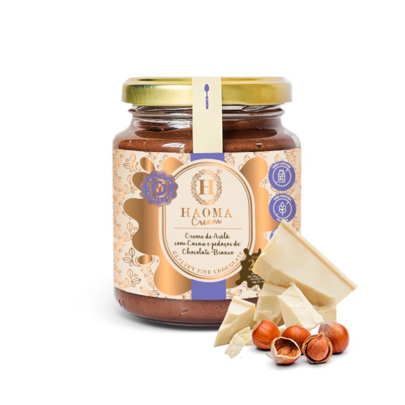 <h2 style="text-align: justify;"><strong>Creme de Avelã com Pedaços de Chocolate Branco 220g</strong></h2> <p style="text-align: justify;">O <strong>creme de avelã com pedaços de chocolate branco </strong><strong>Haoma</strong> é elaborado com ingredientes nobres, como o cacau genuinamente brasileiro, castanha de caju e avelãs, whey protein e colágeno hidrolisado. É cremoso e delicioso, sem adição de açúcar com ingredientes naturais.</p> <h2 style="text-align: justify;"><strong>Motivos para escolher o produto:</strong></h2> <p style="text-align: justify;">● Sem adição de açúcares; </p> <p style="text-align: justify;">● Elaborado com whey protein e colágeno hidrolisado; </p> <p style="text-align: justify;">● Sem adoçantes artificiais;</p> <p style="text-align: justify;">● Elaborado com ingredientes naturais.</p> <h2 style="text-align: justify;"><strong>A Marca</strong></h2> <p style="text-align: justify;">A Haoma foi criada no início de 2017, com o intuito de oferecer chocolates e doces exclusivos, que fossem realmente saudáveis e saborosos, compostos apenas por ingredientes naturais, com sofisticação e requinte em cada detalhe. Neste pequeno espaço de tempo, a Haoma apresentou um crescimento meteórico e hoje é a principal referência em doces saudáveis do país.</p>