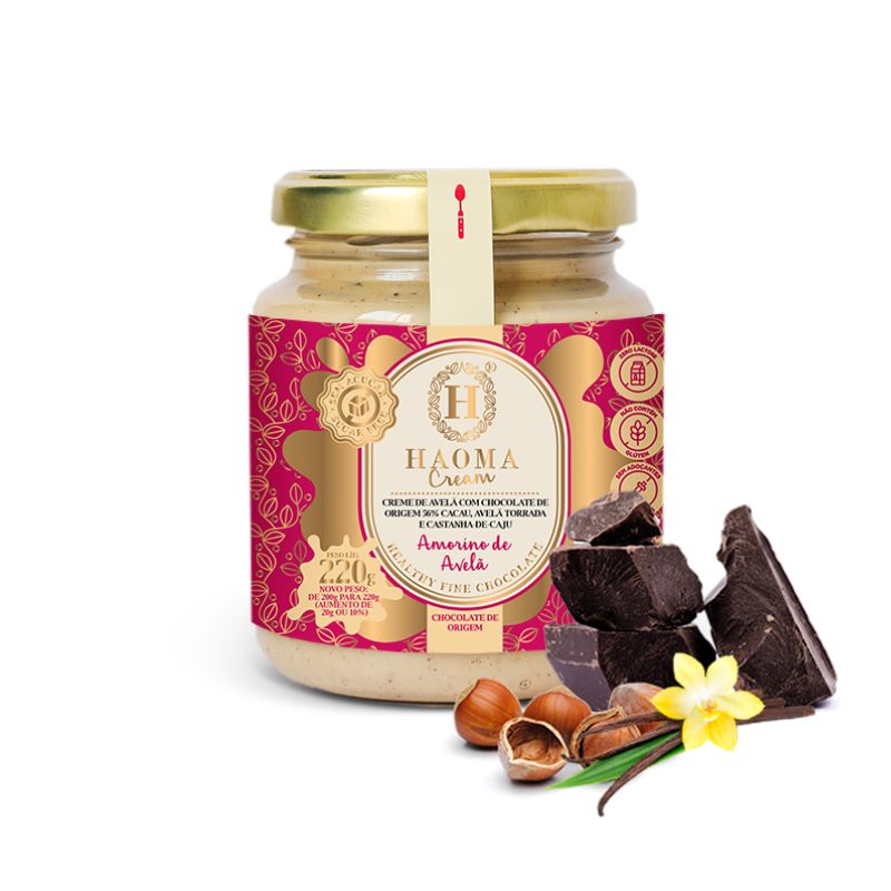 <h2 style="text-align: justify;"><strong>Creme de Amorino de Avelã 220g</strong></h2> <p style="text-align: justify;">O <strong>creme de amorino com avelã </strong><strong>Haoma</strong> é elaborado com ingredientes nobres, como o cacau 56% genuinamente brasileiro, avelã torrada, castanha de caju, whey protein e colágeno hidrolisado. É cremoso e delicioso, sem adição de açúcar com ingredientes naturais.</p> <h2 style="text-align: justify;"><strong>Motivos para escolher o produto:</strong></h2> <p style="text-align: justify;">● Sem adição de açúcares; </p> <p style="text-align: justify;">● Elaborado com whey protein e colágeno hidrolisado; </p> <p style="text-align: justify;">● Sem adoçantes artificiais;</p> <p style="text-align: justify;">● Elaborado com ingredientes naturais;</p> <p style="text-align: justify;">● 56% cacau genuinamente brasileiro de qualidade.</p> <h2 style="text-align: justify;"><strong>A Marca</strong></h2> <p style="text-align: justify;">A Haoma foi criada no início de 2017, com o intuito de oferecer chocolates e doces exclusivos, que fossem realmente saudáveis e saborosos, compostos apenas por ingredientes naturais, com sofisticação e requinte em cada detalhe. Neste pequeno espaço de tempo, a Haoma apresentou um crescimento meteórico e hoje é a principal referência em doces saudáveis do país.</p>