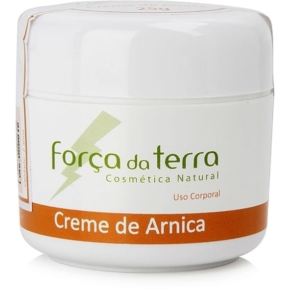 Informações técnicas do produto:<br> O Creme de Arnica, da Força da terra, é um produto natural para uso corporal à base de arnica, sem adição de corantes e produtos de origem animal. Pode ser utilizado como base para óleos essencias, por não ter essência adicionada. É um produto 100% natural e de uso externo.<br> <br> Sobre os ingredientes: <br> Arnica: uma planta medicinal que ajuda no alivio de dores.<br> Recomendação de uso:<br> Espalhe uma pequena quantidade do creme na área afetada com uma gota do óleo essencial cítrico.<br> <br> Por que escolher esse produto?<br> Produto natural<br> Sem conservantes<br> Sem essências<br> Sem parabenos<br> Sem petrolatos<br> Não contém ingredientes de origem animal<br> Sobre a marca:<br> A Força da Terra, foi fundada por volta dos anos 90, a partir da observação no crescente interesse das pessoas na melhoria da qualidade de vida e na preservação da natureza. Ela oferece serviços e cosméticos naturais de alta qualidade, onde são utilizadas matérias-primas naturais, extraídas de maneira sustentável, com o intuito de promover o bem-estar e a beleza, além de preservar o planeta.