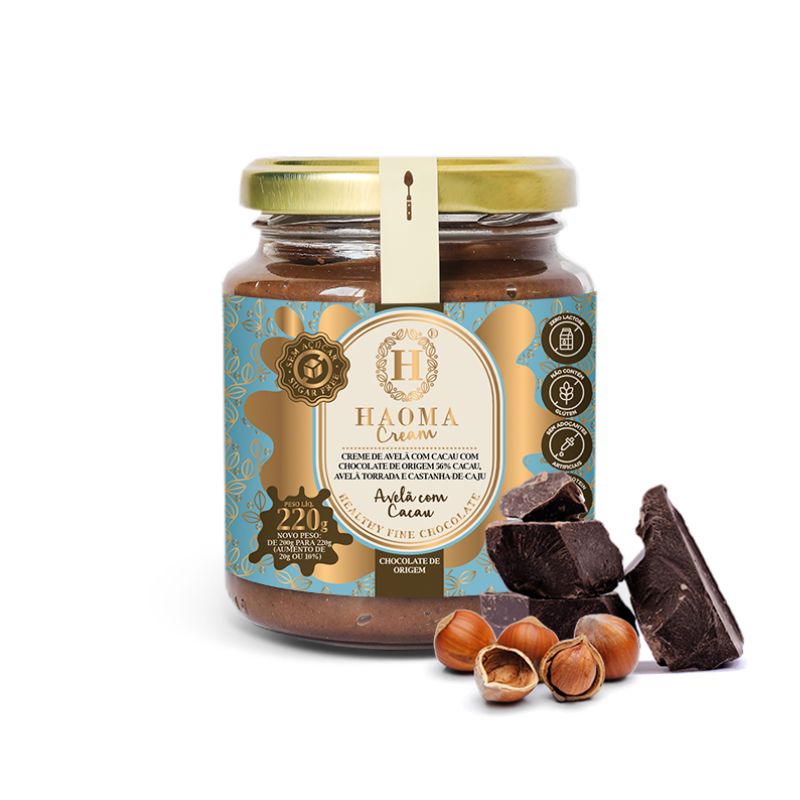 <h2 style="text-align: justify;"><strong>Creme de Avelã com Cacau 220g</strong></h2> <p style="text-align: justify;">O <strong>creme de avelã com cacau </strong><strong>Haoma</strong> é elaborado com ingredientes nobres, como o cacau 56% genuinamente brasileiro, avelã torrada, castanha de caju, whey protein e colágeno hidrolisado. É cremoso e delicioso, sem adição de açúcar com ingredientes naturais.</p> <h2 style="text-align: justify;"><strong>Motivos para escolher o produto:</strong></h2> <p style="text-align: justify;">● Sem adição de açúcares; </p> <p style="text-align: justify;">● Elaborado com whey protein e colágeno hidrolisado; </p> <p style="text-align: justify;">● Sem adoçantes artificiais;</p> <p style="text-align: justify;">● Elaborado com ingredientes naturais;</p> <p style="text-align: justify;">● 56% cacau genuinamente brasileiro de qualidade.</p> <h2 style="text-align: justify;"><strong>A Marca</strong></h2> <p style="text-align: justify;">A Haoma foi criada no início de 2017, com o intuito de oferecer chocolates e doces exclusivos, que fossem realmente saudáveis e saborosos, compostos apenas por ingredientes naturais, com sofisticação e requinte em cada detalhe. Neste pequeno espaço de tempo, a Haoma apresentou um crescimento meteórico e hoje é a principal referência em doces saudáveis do país.</p>