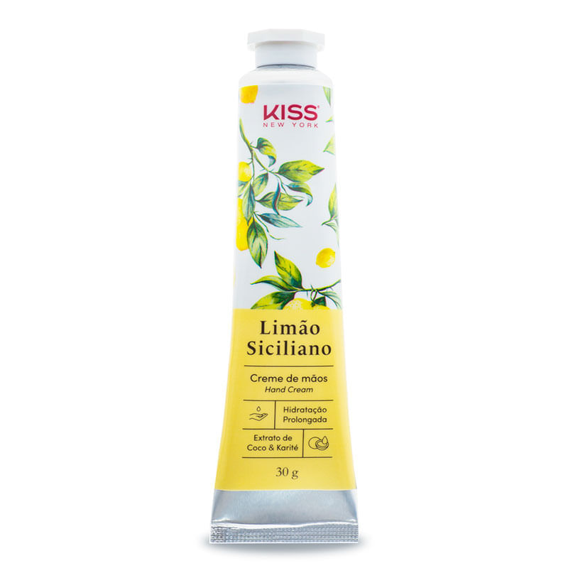 <p>Cuidar das mãos agora faz parte da sua rotina, então por que não aproveitar para fazer desse hábito um ritual prazeroso? Para isso existe o<strong> Creme de Mãos Limão Kiss New York 30g.</strong> A Kiss New York conta com uma linha completa de Creme de Mãos e Álcool em Gel Antisséptico, produtos que formam um combo perfeito para os cuidados com a sua saúde e o seu bem-estar.</p> <p>Enquanto o álcool em gel 70% é responsável por higienizar e proteger, o creme de mãos traz a dose certa de hidratação para evitar que a região fique ressecada com a constante limpeza das mãos (seja com álcool em gel ou com água e sabão). Ao todo, são 5 fragrâncias que perfumam as mãos delicadamente.</p> <p>O Kiss New York Creme de Mãos Limão conta com vitamina e extrato vegetal, tem textura cremosa e alto poder de hidratação porque é rico em extrato de coco e karité, ingredientes que também tornam seu toque suave e aveludado. O melhor? Tudo isso com uma rápida absorção e com uma fórmula não irritante ou oclusiva.</p> <p>Com formato pocket, o creme de mãos da Kiss New York tem o tamanho perfeito para você carregar na bolsa e usar sempre após a higienização com álcool. Aposte nessa combinação e garanta mãos protegidas, hidratadas e perfumadas! Vamos juntos espalhar cuidado?</p> Sugestão de uso: <p>Você sabia que existe um jeito certo de aplicar creme de mãos? Ao contrário do que muitas pessoas estão habituadas, o produto não deve ser aplicado nas palmas das mãos, mas sim na parte externa, que é mais suscetível ao ressecamento. Por isso, depois que o álcool em gel já estiver seco, aplique o creme no dorso das mãos, espalhando em toda a região, no punho e, por fim, também nas palmas da mão.</p> Motivos para escolher o produto: <ul> <li> <p>Textura cremosa e alto poder de hidratação</p> </li> <li> <p>Rico em óleo de coco e karité</p> </li> <li> <p>5 fragrâncias aconchegantes que perfumam as mão delicadamente</p> </li> <li> <p>Toque suave e aveludado</p> </li> <li> <p>Fórmula flexível que reduz a chances das unhas decolarem com facilidade</p> </li> </ul> Sobre a marca: <p> <strong>Kiss New York</strong>, desde 1988, oferece produtos de qualidade diretamente ao consumidor final por meio de itens fáceis de usar e que promovem resultados de salão. De início, seu foco era desenvolver fórmulas para uma manicure profissional em casa. Porém, seu portfólio cresceu expressivamente, ao ponto de se tornar referência mundial em maquiagem.</p>