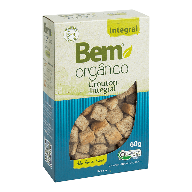 <p>O <strong>Crouton Integral Orgânico</strong>, da<strong> Bem Orgânico</strong>, é preparado com ingredientes orgânicos e integrais, garantindo um produto mais saudável e com alto teor de fibras. Não possui adição de aromatizantes e conservantes naturais e possui apenas 132Kcal por porção.</p>_x000D_ <strong>Recomendações de consumo:</strong>_x000D_ <p>O <strong>Crouton Integral Orgânico</strong> combina com suas saladas, deixando ainda mais gostosas.</p>_x000D_ <strong>Benefícios:</strong>_x000D_ <ul>_x000D_ <li>Isento de gordura trans</li>_x000D_ <li>Feitos com sal com teor reduzido de sódio</li>_x000D_ <li>Com origem orgânica</li>_x000D_ </ul>