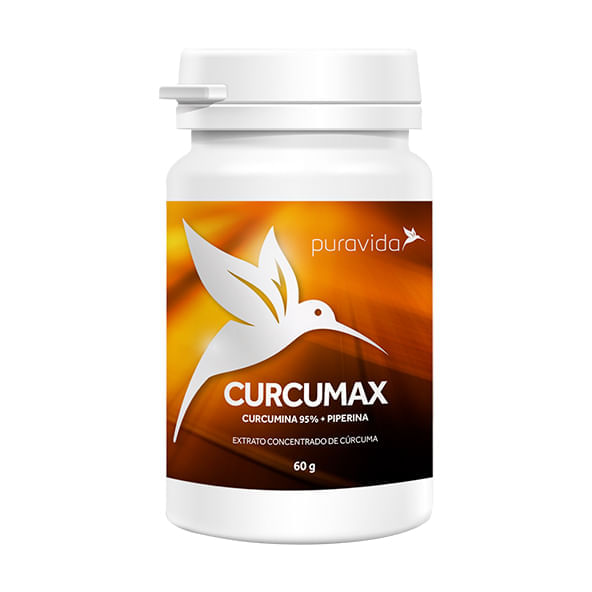 Informações técnicas do produto:<br> A Curcumax da Pura Vida, 60g, é um extrato especial não-cristalizado de Cúrcuma, obtido do suco fresco da raiz através de alta tecnologia e sem uso de solventes. É associado com Piperina e por isso tem sua absorção otimizada, especialmente quando usada em conjunto de boas gorduras alimentares.<br> <br> Recomendação de consumo:<br> Pode ser polvilhado nas suas preparações como em sopas ou no feijão, pode utilizar para temperar a salada ou acrescentar à sua bebida favorita. Como a cúrcuma é lipossolúvel, recomenda-se que haja presença de gordura natural (como coco, abacate, manteiga ou azeite) na mesma refeição.<br> <br> A dosagem recomendada é de 500 mg (1/4 colher de café). Cada frasco de Curcumax possui 120 doses.<br> <br> Por que escolher esse produto?<br> Não contém glúten<br> Sem adição de açúcares<br> Livre de aditivos químicos<br> Livre de sódio<br> Zero gordura trans<br> Vegano<br> Versátil<br> Sobre a marca:<br> A Pura Vida é uma empresa com o propósito de promover uma alimentação sem comidas artificializadas, pobres em nutrientes e ricas em conservantes, pesticidas, gorduras hidrogenadas e açúcar em excesso. Preocupa-se, ao mesmo tempo, com o impacto da alimentação na qualidade de vida e no meio ambiente, utilizando produtos frescos e de produção recente obtidos de cultivadores confiáveis e tecnologias para preservar, realçar e concentrar as propriedades dos alimentos.