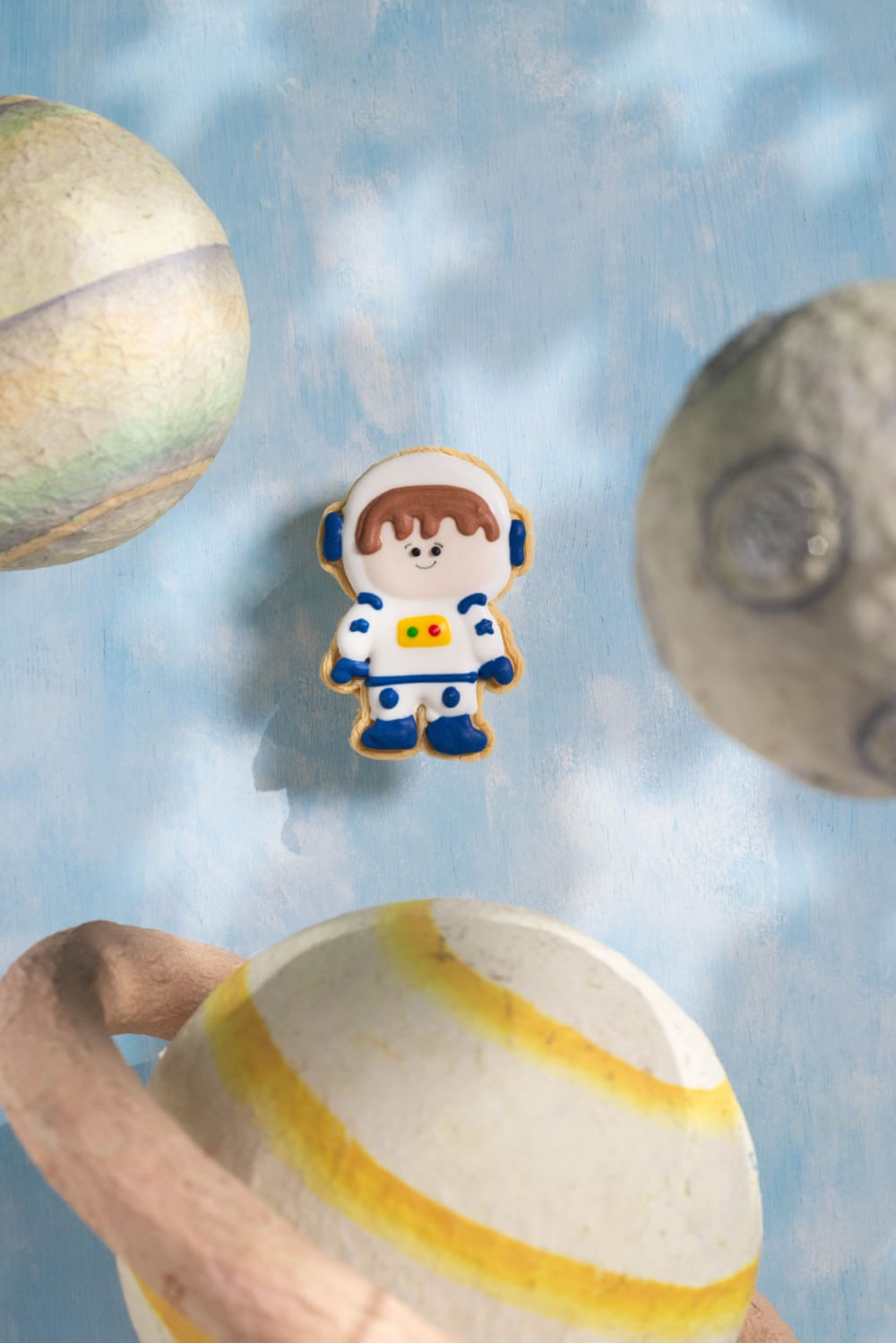 Encante-se com nossos Astronautas!<br>Feitos com biscoito amanteigado e decorados com glacê colorido, eles levam sabor e diversão em cada detalhe. Perfeitos para garantir o sorriso dos pequenos exploradores e transformar qualquer momento em uma aventura mais doce!