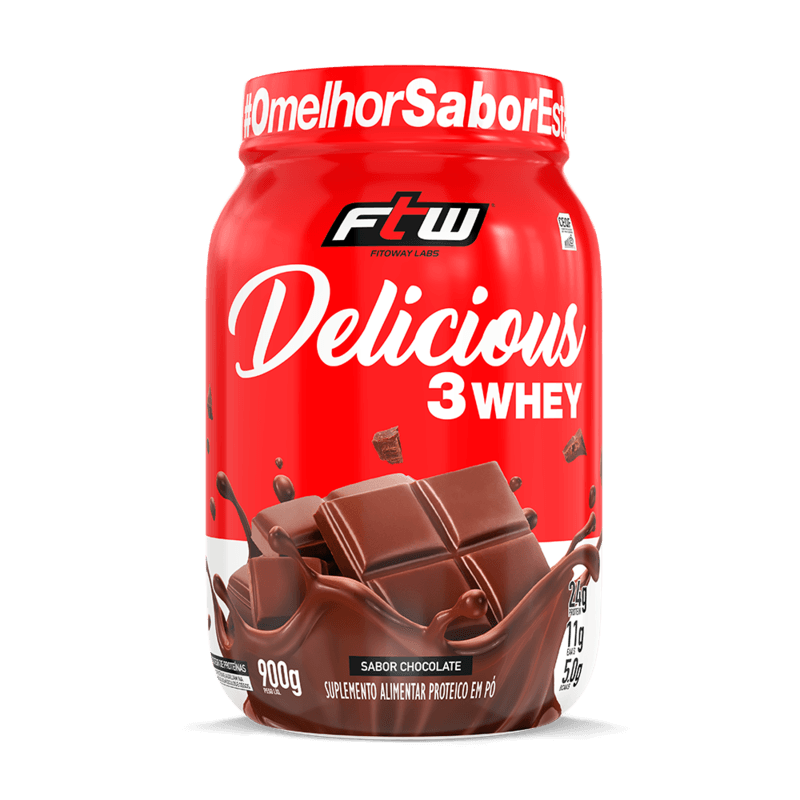<p>O <strong>Delicious 3 Whey sabor Chocolate FTW</strong> combina nutrição e sabor em uma fórmula exclusiva. Com um <strong>blend de proteínas do soro do leite — concentrada, isolada e hidrolisada</strong> — entrega <strong>24 g de proteína por porção</strong>, além de ser <strong>rico em BCAA e glutamina</strong>. Sua fórmula foi especialmente desenvolvida para oferecer <strong>alta qualidade nutricional</strong> e <strong>sabores únicos que só a FTW tem</strong>. Uma combinação surpreendente para quem quer variar sem abrir mão da performance.</p> <h2>Sugestão de consumo</h2> <p>Recomenda-se diluir <strong>2 medidas dosadoras (40 g)</strong> do produto em aproximadamente <strong>200 ml (1 copo) de água gelada</strong>. Consumir após a atividade física, nos lanches intermediários ou conforme recomendação do nutricionista ou médico.</p> <h2>Motivos para escolher o produto</h2> <ul> <li>Whey 3W</li> <li>Fornece 24 g de proteína por porção</li> <li>Fonte de BCAA e glutamina</li> <li>Sabor gourmet</li> <li>Sem adição de açúcares</li> <li>Sem glúten</li> </ul> <h2>A marca</h2> <p>A <strong>FTW</strong> nasceu do espírito <em>For The Win</em>, com a missão de oferecer suplementos de alta qualidade para quem leva o esporte a sério. Mais do que atender às demandas do desempenho físico, a marca <strong>inspira atletas de todos os níveis a superarem seus próprios limites</strong>, com produtos desenvolvidos para potencializar resultados.</p> <p>Com uma linha completa e rigorosamente testada, a FTW está presente na rotina de quem busca <strong>evolução constante</strong>. Cada fórmula carrega o <strong>compromisso com a performance, a saúde e a superação</strong>.</p>
