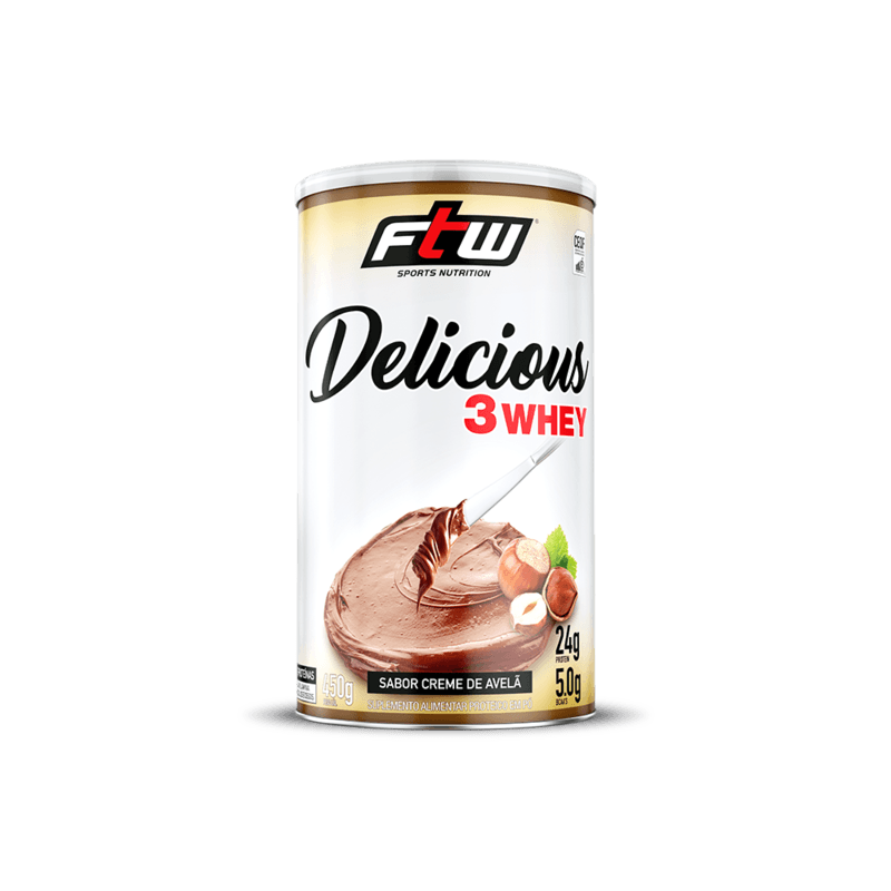 <p><span>O </span><b>Delicious 3 Whey sabor creme de avelã FTW</b><span> combina nutrição e sabor em uma fórmula exclusiva. Com um blend de proteínas do soro do leite — concentrada, isolada e hidrolisada — entrega 24 g de proteína por porção, além de ser rico em BCAA e glutamina. Sua fórmula foi especialmente desenvolvida para oferecer alta qualidade nutricional e sabores únicos que só a FTW tem. Uma combinação surpreendente para quem quer variar sem abrir mão da performance.</span></p> <h2><b>Sugestão de consumo: </b></h2> <p><span>Recomenda-se diluir 2 medidas dosadoras (40 g) do produto em aproximadamente 200 ml (1 copo) de água gelada. Consumir após a atividade física, nos lanches intermediários ou conforme recomendação do nutricionista ou médico.</span></p> <h2><b>Motivos para escolher o produto: </b></h2> <ul> <li aria-level="1"><span>Whey 3W;</span></li> <li aria-level="1"><span>Fornece 24 g de proteína por porção;</span></li> <li aria-level="1"><span>Fonte de BCAA e glutamina;</span></li> <li aria-level="1"><span>Sabor gourmet;</span></li> <li aria-level="1"><span>Sem adição de açúcares;</span></li> <li aria-level="1"><span>Sem glúten.</span></li> </ul> <h2><b>A marca:</b></h2> <p><span>A </span><b>FTW</b><span> nasceu do espírito </span><i><span>For The Win</span></i><span>, com a missão de oferecer suplementos de alta qualidade para quem leva o esporte a sério. Mais do que atender às demandas do desempenho físico, a marca inspira atletas de todos os níveis a superarem seus próprios limites, com produtos desenvolvidos para potencializar resultados. Com uma linha completa e rigorosamente testada, a FTW está presente na rotina de quem busca evolução constante. Cada fórmula carrega o compromisso com a performance, a saúde e a superação.</span></p>