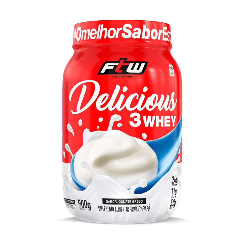 <p><span>O </span><b>Delicious 3 Whey sabor iogurte grego FTW</b><span> combina nutrição e sabor em uma fórmula exclusiva. Com um blend de proteínas do soro do leite — concentrada, isolada e hidrolisada — entrega 24 g de proteína por porção, além de ser rico em BCAA e glutamina. Sua fórmula foi especialmente desenvolvida para oferecer alta qualidade nutricional e sabores únicos que só a FTW tem. Uma combinação surpreendente para quem quer variar sem abrir mão da performance.</span></p> <h2><b>Sugestão de consumo: </b></h2> <p><span>Recomenda-se diluir 2 medidas dosadoras (40 g) do produto em aproximadamente 200 ml (1 copo) de água gelada. Consumir após a atividade física, nos lanches intermediários ou conforme recomendação do nutricionista ou médico.</span></p> <h2><b>Motivos para escolher o produto: </b></h2> <ul> <li aria-level="1"><span>Whey 3W;</span></li> <li aria-level="1"><span>Fornece 24 g de proteína por porção;</span></li> <li aria-level="1"><span>Fonte de BCAA e glutamina;</span></li> <li aria-level="1"><span>Sabor gourmet;</span></li> <li aria-level="1"><span>Sem adição de açúcares.</span></li> </ul> <h2><b>A marca:</b></h2> <p><span>A </span><b>FTW</b><span> nasceu do espírito </span><i><span>For The Win</span></i><span>, com a missão de oferecer suplementos de alta qualidade para quem leva o esporte a sério. Mais do que atender às demandas do desempenho físico, a marca inspira atletas de todos os níveis a superarem seus próprios limites, com produtos desenvolvidos para potencializar resultados. Com uma linha completa e rigorosamente testada, a FTW está presente na rotina de quem busca evolução constante. Cada fórmula carrega o compromisso com a performance, a saúde e a superação.</span></p>