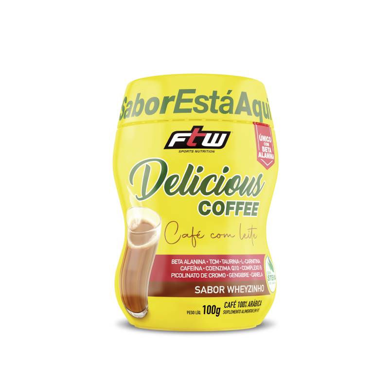 <p><span>O </span><b>Delicious Coffee sabor café com wheyzinho FTW</b><span> é uma bebida funcional desenvolvida para quem busca energia, foco e desempenho com equilíbrio. Feito com café 100% arábica, ele traz em sua fórmula ingredientes como whey protein concentrado, TCM, taurina, L-carnitina, coenzima Q10, picolinato de cromo, gengibre, canela e vitaminas do complexo B, tudo adoçado naturalmente com stévia. Além disso, ele vem com <strong>1 g de beta-alanina</strong>, um diferencial para quem busca uma alternativa de pré-treino e não tolera altas doses de cafeína. Uma combinação única, pensada para potencializar sua rotina com sabor e funcionalidade.</span></p> <h2><b>Sugestão de consumo: </b></h2> <p><span>Recomenda-se diluir 10 g (1 medida dosadora) em cerca de 100 ml de água quente. Uma alternativa ao café tradicional, pode ser consumido 1 a 2 porções ao dia, 20 minutos antes da atividade física ou pela manhã.</span></p> <h2><b>Motivos para escolher o produto: </b></h2> <ul> <li aria-level="1"><span>Formulado com beta-alanina e whey protein concentrado;</span></li> <li aria-level="1"><span>100 mg de cafeína por porção;</span></li> <li aria-level="1"><span>Contém Coenzima Q10 e L-carnitina;</span></li> <li aria-level="1"><span>Enriquecido com vitaminas do complexo B;</span></li> <li aria-level="1"><span>Adoçado com stévia, adoçante natural;</span></li> <li aria-level="1"><span>Sem adição de açúcar;</span></li> <li aria-level="1"><span>Livre de glúten.</span></li> </ul> <h2><b>A marca:</b></h2> <p><span>A </span><b>FTW</b><span> nasceu do espírito </span><i><span>For The Win</span></i><span>, com a missão de oferecer suplementos de alta qualidade para quem leva o esporte a sério. Mais do que atender às demandas do desempenho físico, a marca inspira atletas de todos os níveis a superarem seus próprios limites, com produtos desenvolvidos para potencializar resultados. Com uma linha completa e rigorosamente testada, a FTW está presente na rotina de quem busca evolução constante. Cada fórmula carrega o compromisso com a performance, a saúde e a superação.</span></p>