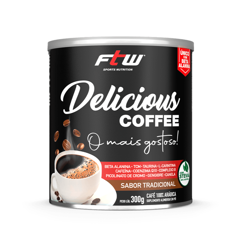 <p><span>O </span><b>Delicious Coffee sabor tradicional FTW</b><span> é uma bebida funcional desenvolvida para quem busca energia, foco e desempenho com equilíbrio. Feito com café 100% arábica, ele traz em sua fórmula ingredientes como TCM, taurina, L-carnitina, coenzima Q10, picolinato de cromo, gengibre, canela e vitaminas do complexo B, tudo adoçado naturalmente com stévia. Além disso, ele vem com 1 g de beta-alanina, um diferencial para quem busca uma alternativa de pré-treino e não tolera altas doses de cafeína. Uma combinação única, pensada para potencializar sua rotina com sabor e funcionalidade.</span></p> <h2><b>Sugestão de consumo: </b></h2> <p><span>Recomenda-se diluir 10 g (1 medida dosadora) em cerca de 100 ml de água quente. Uma alternativa ao café tradicional, pode ser consumido 1 a 2 porções ao dia, 20 minutos antes da atividade física ou pela manhã.</span></p> <h2><b>Motivos para escolher o produto: </b></h2> <ul> <li aria-level="1"><span>Formulado com beta-alanina</span></li> <li aria-level="1"><span>100 mg de cafeína por porção</span></li> <li aria-level="1"><span>Contém Coenzima Q10 e L-carnitina</span></li> <li aria-level="1"><span>Enriquecido com vitaminas do complexo B</span></li> <li aria-level="1"><span>Adoçado com stévia, adoçante natural</span></li> <li aria-level="1"><span>Sem adição de açúcar</span></li> <li aria-level="1"><span>Livre de glúten e lactose</span></li> </ul> <h2><b>A marca:</b></h2> <p><span>A </span><b>FTW</b><span> nasceu do espírito </span><i><span>For The Win</span></i><span>, com a missão de oferecer suplementos de alta qualidade para quem leva o esporte a sério. Mais do que atender às demandas do desempenho físico, a marca inspira atletas de todos os níveis a superarem seus próprios limites, com produtos desenvolvidos para potencializar resultados. Com uma linha completa e rigorosamente testada, a FTW está presente na rotina de quem busca evolução constante. Cada fórmula carrega o compromisso com a performance, a saúde e a superação.</span></p>