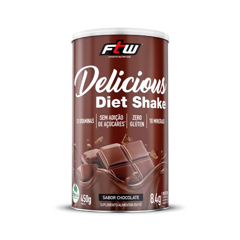 <p><span>O </span><b>Delicious Diet Shake sabor chocolate FTW</b><span> é uma opção prática e saborosa para equilibrar a alimentação no dia a dia e ser um aliado nas dietas. Sua fórmula combina um blend proteico com proteína concentrada do soro do leite e proteína isolada da soja, além de um mix completo de vitaminas e 10 minerais essenciais. Cada porção oferece 8,4 g de proteína, é sem adição de açúcares e adoçado com estévia, um adoçante natural.</span></p> <h2><b>Sugestão de consumo: </b></h2> <p><span>Uma alternativa para complementar a alimentação em lanches intermediários ou até mesmo como substituto de refeição em dietas restritivas ou conforme recomendação do nutricionista ou médico.</span></p> <h2><b>Motivos para escolher o produto: </b></h2> <ul> <li aria-level="1"><span>Oferece 8,4 g de proteína por porção;</span></li> <li aria-level="1"><span>Enriquecido com vitaminas;</span></li> <li aria-level="1"><span>Contém 10 minerais;</span></li> <li aria-level="1"><span>Adoçado com adoçante natural stévia;</span></li> <li aria-level="1"><span>Livre de glúten.</span></li> </ul> <h2><b>A marca:</b></h2> <p><span>A </span><b>FTW</b><span> nasceu do espírito </span><i><span>For The Win</span></i><span>, com a missão de oferecer suplementos de alta qualidade para quem leva o esporte a sério. Mais do que atender às demandas do desempenho físico, a marca inspira atletas de todos os níveis a superarem seus próprios limites, com produtos desenvolvidos para potencializar resultados. Com uma linha completa e rigorosamente testada, a FTW está presente na rotina de quem busca evolução constante. Cada fórmula carrega o compromisso com a performance, a saúde e a superação.</span></p>