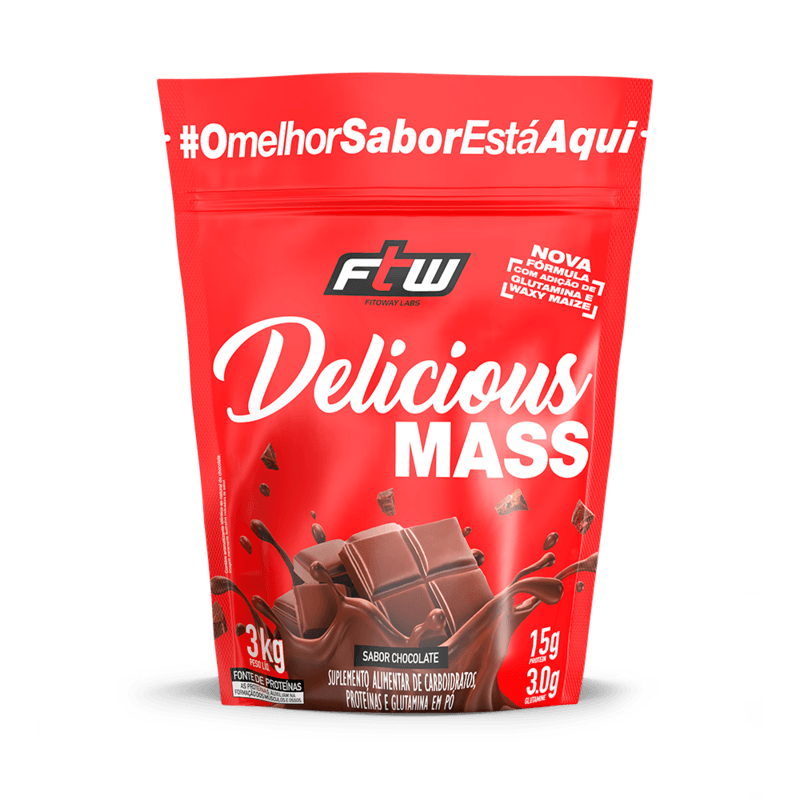 <p><span>O </span><b>Delicious Mass sabor chocolate FTW</b><span> é um suplemento hipercalórico formulado com maltodextrina e waxy maize como fontes de carboidratos. Cada porção fornece <strong>15 g de proteína</strong>, combinando whey protein concentrado e isolado, além da adição de glutamina. Com sabor gourmet, é uma opção prática para complementar a ingestão calórica e proteica no dia a dia.</span></p> <h2><b>Sugestão de consumo: </b></h2> <p><span>Bata no liquidificador 6 medidas dosadoras (160 g) em 300 ml de água ou leite gelado, até completa homogeneização. Recomenda-se o consumo pela manhã e entre as principais refeições ou conforme orientação profissional.</span></p> <h2><b>Motivos para escolher o produto: </b></h2> <ul> <li aria-level="1"><span>Fornece 15 g de proteína;</span></li> <li aria-level="1"><span>Elaborado com Waxy maize;</span></li> <li aria-level="1"><span>Enriquecido com glutamina;</span></li> <li aria-level="1"><span>Sabor gourmet;</span></li> <li aria-level="1"><span>Opção prática para complementar a ingestão calórica diária;</span></li> <li aria-level="1"><span>Sem glúten.</span></li> </ul> <h2><b>A marca:</b></h2> <p><span>A </span><b>FTW</b><span> nasceu do espírito </span><i><span>For The Win</span></i><span>, com a missão de oferecer suplementos de alta qualidade para quem leva o esporte a sério. Mais do que atender às demandas do desempenho físico, a marca inspira atletas de todos os níveis a superarem seus próprios limites, com produtos desenvolvidos para potencializar resultados. Com uma linha completa e rigorosamente testada, a FTW está presente na rotina de quem busca evolução constante. Cada fórmula carrega o compromisso com a performance, a saúde e a superação.</span></p>