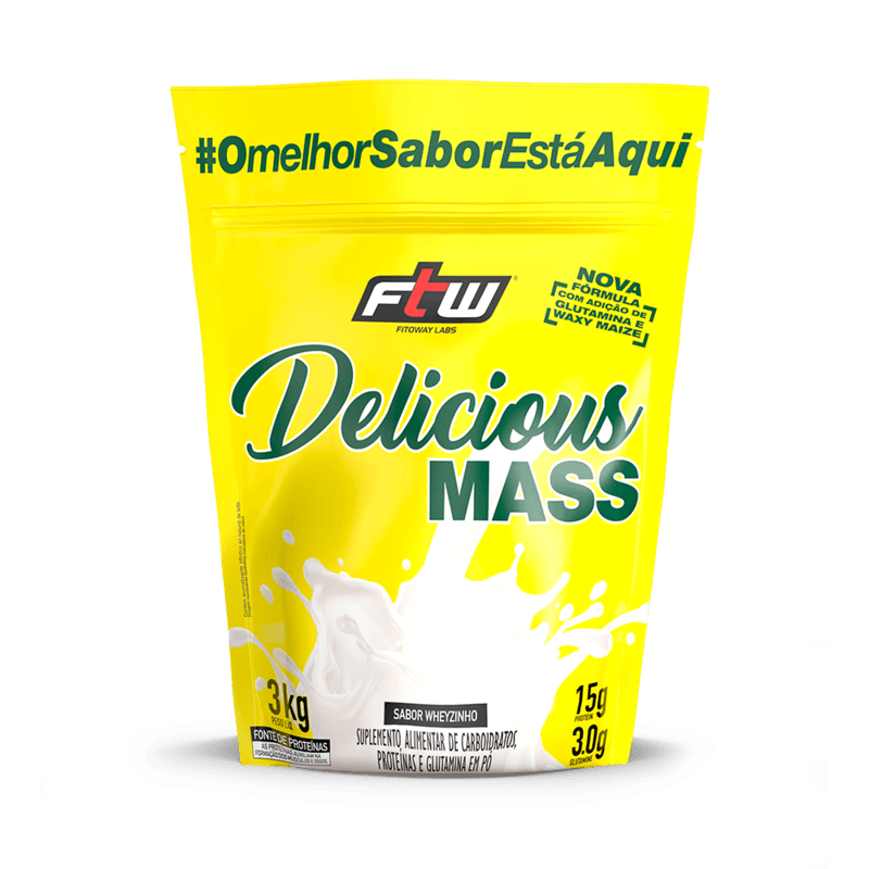 <p><span>O </span><b>Delicious Mass sabor wheyzinho FTW</b><span> é um suplemento hipercalórico formulado com maltodextrina e waxy maize como fontes de carboidratos. Cada porção fornece <strong>15 g de proteína</strong>, combinando whey protein concentrado e isolado, além da adição de glutamina. Com sabor gourmet, é uma opção prática para complementar a ingestão calórica e proteica no dia a dia.</span></p> <h2><b>Sugestão de consumo: </b></h2> <p><span>Bata no liquidificador 6 medidas dosadoras (160 g) em 300 ml de água ou leite gelado, até completa homogeneização. Recomenda-se o consumo pela manhã e entre as principais refeições ou conforme orientação profissional.</span></p> <h2><b>Motivos para escolher o produto: </b></h2> <ul> <li aria-level="1"><span>Fornece 15 g de proteína</span></li> <li aria-level="1"><span>Elaborado com Waxy maize</span></li> <li aria-level="1"><span>Enriquecido com glutamina</span></li> <li aria-level="1"><span>Sabor gourmet</span></li> <li aria-level="1"><span>Opção prática para complementar a ingestão calórica diária</span></li> </ul> <h2><b>A marca:</b></h2> <p><span>A </span><b>FTW</b><span> nasceu do espírito </span><i><span>For The Win</span></i><span>, com a missão de oferecer suplementos de alta qualidade para quem leva o esporte a sério. Mais do que atender às demandas do desempenho físico, a marca inspira atletas de todos os níveis a superarem seus próprios limites, com produtos desenvolvidos para potencializar resultados. Com uma linha completa e rigorosamente testada, a FTW está presente na rotina de quem busca evolução constante. Cada fórmula carrega o compromisso com a performance, a saúde e a superação.</span></p>