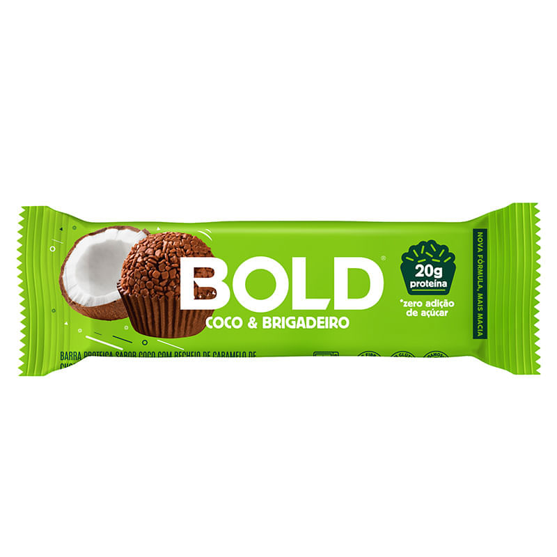 <p>A <strong>Bold bar coco e brigadeiro</strong>, da <strong>Bold Snacks</strong>, é uma barra de proteína deliciosa e nutritiva. Cada barrinha fornece <strong>20 g de proteínas</strong> proveniente do whey protein e do colágeno hidrolisado, além de 5 g de fibras e zero adição de açúcares. Ideal para satisfazer a vontade de comer um doce com praticidade.</p> Sobre os Ingredientes: <p>Confira mais informações sobre alguns ingredientes do produto.</p> <ul> <li> <strong>Blend proteico:</strong> composto por proteínas do leite e do soro do leite, fornecem aminoácidos essenciais, ou seja, aqueles que o nosso corpo não produz e precisamos obter por meio da dieta.</li> </ul> <ul> <li> <strong>Colágeno hidrolisado:</strong> os aminoácidos presentes no colágeno estão presentes em diversos tecidos, tais como o da pele, ossos, cartilagens e ligamentos.</li> </ul> <ul> <li> <strong>Frutooligossacarídeos (FOS):</strong> considerada uma fibra prebiótica.</li> </ul> Alérgicos: <p>Contém derivados de leite e soja. Contém lactose.</p> Recomendação de consumo: <p>Consuma até 2 unidades ao dia ou conforme orientação profissional.</p> <p><strong>Dica:</strong> experimente deixar a barrinha por alguns segundos no micro-ondas e aproveite a sua sobremesa.</p> Por que escolher este produto? <ul> <li>20 g de proteínas por unidade</li> <li>Sem adição de açúcar</li> <li>Sem glúten</li> <li>Com whey protein</li> <li>Sem proteína de soja</li> <li>5g de fibras alimentares</li> <li>Zero gordura trans</li> </ul> Sobre a marca: <p>A <strong>Bold Snacks</strong> é uma empresa que preza pelo sabor e qualidade nutricional dos seus produtos. Desenvolve snacks gostosos, mas sem deixar de lado os aspectos funcionais, para que não seja apenas pelo prazer de comer, mas pelo SENTIDO que comer um snack vai ter em sua alimentação diária.</p> Sobre a marca: <p></p> <p>A Bold Snacks é uma empresa que preza pelo sabor e qualidade nutricional dos seus produtos. Desenvolve snacks gostosos, mas sem deixar de lado os aspectos funcionais, para que não seja apenas pelo prazer de comer, mas pelo SENTIDO que comer um snack vai ter em sua alimentação diária.</p>