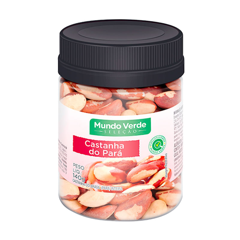 <p>A <strong>Castanha do Pará Mundo Verde Seleção 140g </strong>é uma castanha sem casca e desidratada selecionada diretamente da <strong>Floresta Amazônica</strong>. Fonte natural de selênio e de proteína é uma opção ideal de lanche entre as refeições. Em potes de 140g, o que facilita o transporte e a conservação do produto.</p> Sugestão de consumo: <p>Pode ser consumido a qualquer hora do dia, no intervalo das refeições, ou adicionado em salada de frutas, açaí, entre outros.</p> Motivos para escolher o produto: <ul> <li> <p>Naturalmente sem glúten</p> </li> <li> <p>Fonte de proteína</p> </li> <li> <p>Fonte natural de selênio</p> </li> <li> <p>Selecionada da Floresta Amazônica</p> </li> </ul> Sobre a marca: <p>A <strong>Mundo Verde Seleção </strong>é uma linha de produtos para quem quer ter uma vida mais saudável e gostosa. A marca quer ajudar a colocar essas escolhas em prática. A paixão e conhecimento pelos alimentos, nutrientes, aromas e sabores permitem a seleção das melhores opções saudáveis para qualquer ocasião. Conheça a linha completa Mundo Verde Seleção, com inúmeros produtos saudáveis e gostosos para facilitar seu dia a dia.</p>