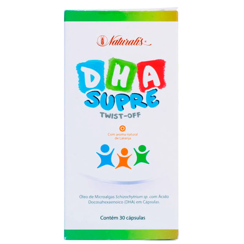 O DHA Supre TWIST OFF, com 180 cápsulas, da Naturalis, é um óleo de microalgas Schizochytrium spcom rico em DHA, tem o aroma natural de laranja e as cápsulas são no formato Twist-Off, facilitando o consumo do produto pelas crianças.
