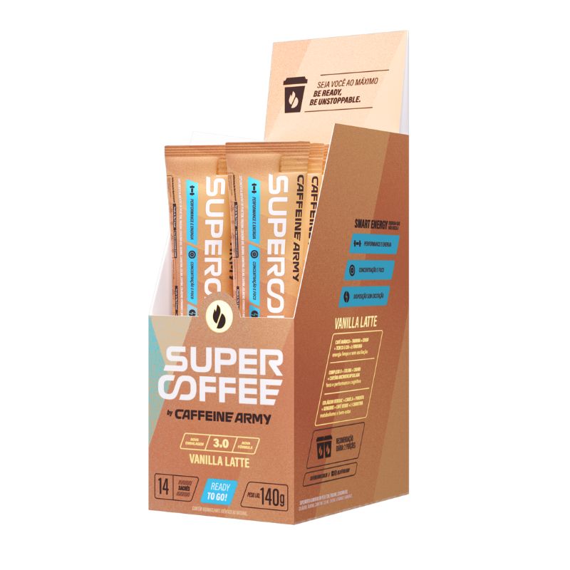 <p dir="ltr">O <strong>SuperCoffee 3.0 sabor vanilla latte Caffeine Army</strong>, é elaborado com um blend de ingredientes naturais exclusivamente combinados para proporcionar um boost de energia para o corpo e a mente. O formato To Go é uma dose única pensada para te acompanhar em todos os momentos do dia.</p> <h2 dir="ltr">Sobre os ingredientes: </h2> <p dir="ltr"><strong>TCM C8 E C10: </strong>Ajudam a gerar energia para o corpo e mente, aumentar a saciedade e boa digestão. </p> <p dir="ltr"><strong>CoQ10: </strong>tem ação antioxidante e atua na geração de energia celular. </p> <p dir="ltr"><strong>Colágeno Verisol®: </strong>uma proteína que atua na saúde da pele, cabelos e unhas. Ajuda a melhorar a elasticidade e firmeza da pele. </p> <p dir="ltr"><strong>Café verde:</strong> ação antioxidante e termogênica. </p> <h2 dir="ltr">Sugestão de consumo: </h2> <p dir="ltr">Este é um produto instantâneo em pó. Em uma xícara, misture 1 porção (dosador ou 10g) com água quente (100ml). É recomendado o consumo de até 2 doses diárias. Usar 30 minutos antes da atividade física ou cognitiva ou em jejum ao acordar.</p> <h2 dir="ltr">Motivos para escolher o produto: </h2> <ul> <li dir="ltr"> <p dir="ltr">Pode ser consumido antes do exercício ou estudos;</p> </li> <li dir="ltr"> <p dir="ltr">Elaborado com colágeno Verisol®;</p> </li> <li dir="ltr"> <p dir="ltr">100mg de cafeína na porção;</p> </li> <li dir="ltr"> <p dir="ltr">50g de Coenzima Q10 na porção;</p> </li> <li dir="ltr"> <p dir="ltr">650mg de Taurina na porção;</p> </li> <li dir="ltr"> <p dir="ltr">Fornece energia; </p> </li> <li dir="ltr"> <p dir="ltr">Em sachê é prático para consumo;</p> </li> <li dir="ltr"> <p dir="ltr">Sem adição de açúcar.</p> </li> </ul> <h2 dir="ltr">A Marca</h2> <p dir="ltr">A <strong>Caffeine Army</strong> nasceu em 2016 com o propósito de despertar as melhores versões que já existem dentro de nós mesmos. Não representa apenas o início de uma marca, mas sim a construção de uma comunidade engajada, unida e imparável, que compartilha do mesmo desejo incessante em evoluir 1% a cada dia. Tudo isso por transformar um estilo de vida em propósito, com o desejo de levar adiante a mudança que uma rotina de saúde, bem-estar e alta performance pode causar. Desde então, você faz parte de nossa história. Começamos com a venda de 3 produtos necessários para fazer o bulletproof coffee: café arábica, manteiga ghee e óleo de coco. Depois, em 2018, lançamos a primeira versão do SuperCoffee, sendo pioneiros e criadores do segmento.</p>