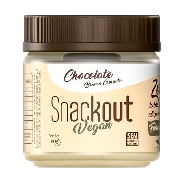 Informações técnicas do produto:<br> O Doce de chocolate branco crocante Vegan da Snackout, é uma opção vegana, sem nenhuma adição de açúcares, corantes artificiais e ingredientes de origem animal. Ganache sabor chocolate branco cremoso, feito à base de leite de coco promovendo um sabor único.<br> <br> Recomendação de consumo:<br> Ótima opção de complementação no café da manhã e/ou lanches, pode ser consumido com torradas, pães, tapioca, pura ou como desejar. Além disso, dá para ser usado em preparações de receitas. <br> <br> Informações sobre ALERGÊNICOS:<br> Contém leite e derivados de soja. Pode conter derivados de leite (por ser produzido em mesmo equipamento em que se processam derivados de leite).<br> <br> Por que escolher esse produto?<br> 100% vegano<br> Sem adição de açúcar<br> Sem adição de sal<br> Zero lactose<br> Pronto para consumo<br> Sobre a marca:<br> A Snackout é uma empresa fundada em 2015, com a ideia de proporcionar alimentos saudáveis e saborosos de verdade a partir de produtos diferenciados da marca. Com um time excelente pensando sempre na sintonia, confiança, garra e criatividade, convidam os clientes a seguir um estilo de vida mais saudável de maneira leve e prazerosa, proporcionando bem-estar e uma experiência incrivel.