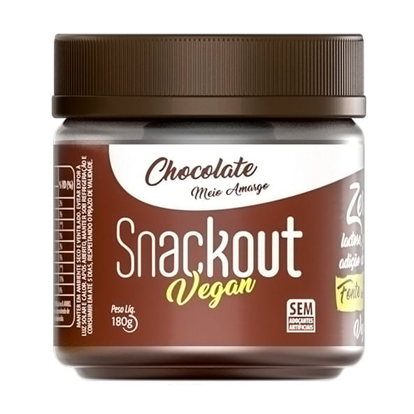 Informações técnicas do produto:<br> O Doce de chocolate meio amargo Vegan da Snackout, é feito a partir do cacau e do leite de coco, adoçado com maltitol, resultando no delicioso sabor de ganache meio amargo, pronto para ser consumido a qualquer hora.<br> <br> Livre de glúten e sem lactose, uma ótima opção para sensíveis ou intolerantes a estes compostos. Sem adição de açúcar e fonte de fibras, para incrementar a dieta.<br> <br> Recomendação de consumo:<br> Ótima opção de complementação no café da manhã e/ou lanches, pode ser consumido com torradas, pães, tapioca, pura ou como desejar. Além disso, dá para ser usado em preparações de receitas. <br> <br> Informações sobre ALERGÊNICOS:<br> Contém leite e derivados de soja. Pode conter derivados de leite (por ser produzido em mesmo equipamento em que se processam derivados de leite).<br> <br> Por que escolher esse produto?<br> 2,8g de fibras na porção<br> Isento de glúten<br> Sem sódio<br> Vegano<br> Sem lactose<br> Sem adição de açúcar<br> Sobre a marca:<br> A Snackout é uma empresa fundada em 2015, com a ideia de proporcionar alimentos saudáveis e saborosos de verdade a partir de produtos diferenciados da marca. Com um time excelente pensando sempre na sintonia, confiança, garra e criatividade, convidam os clientes a seguir um estilo de vida mais saudável de maneira leve e prazerosa, proporcionando bem-estar e uma experiência incrivel.