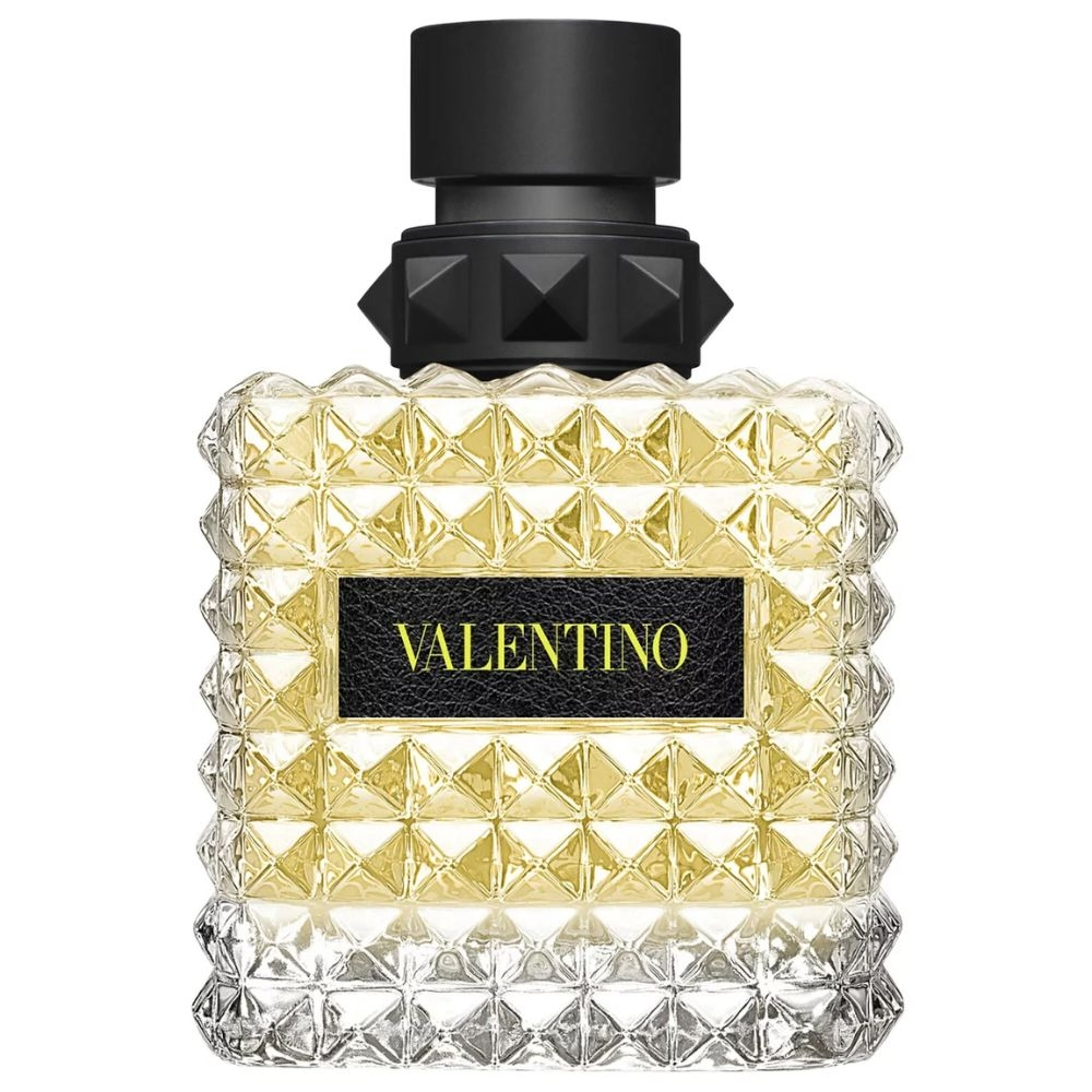 Com Born in Roma Yellow Dream Eau de Parfum, Valentino abre um novo capítulo para um mundo que precisa sonhar. Nascido do sonho de Roma, banhado por uma luz dourada, esse perfume floral, criado a partir do aroma de mil pétalas de rosa, é reforçado pelo aroma contrastante de almíscar. Com uma delicada essência de rosa turca essa fragrância cria uma feminilidade florescente e luminosa, com um rastro sedoso, tranquilizador e reconfortante. Essa fragrância possui notas cítricas e almíscar é usada perfeitamente na primavera e no verão ou sempre que você precisar de uma fragrância leve para melhorar seu humor.<br /> <br /> O frasco presta homenagem ao icônico Valentino Rockstud, as famosas e desejadas tachinhas de Valentino presentes nas bolsas e sapatos da marca. Esse design piramidal arrojado, inspirado na arquitetura romana, é uma assinatura da Maison Valentino. O frasco com o estilo clássico do Rockstud ficou ainda mais moderno graças ao contraste do couro preto com o rosa vivo. Em Valentino, o rosa é punk, poético, romântico, mas também ousado e audacioso.