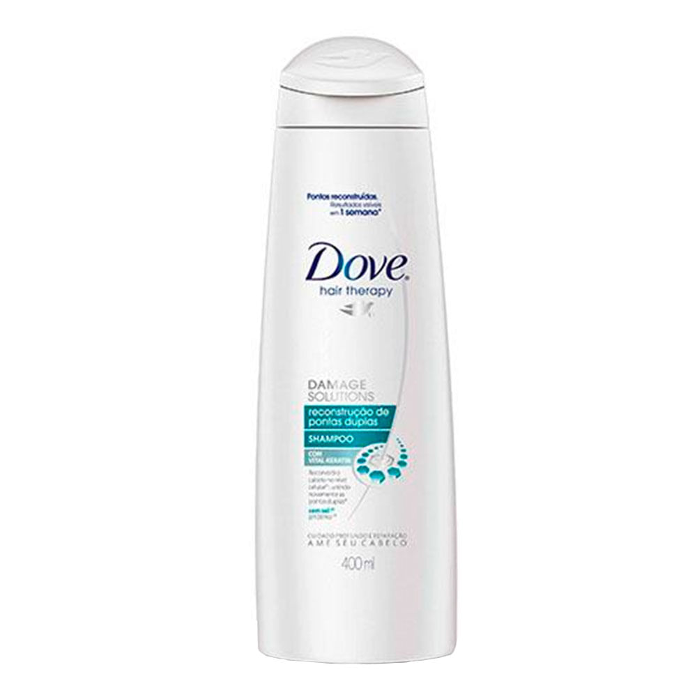As pontinhas duplas que se despeçam, pois as mulheres vão eliminá-las com o Shampoo Dove Reconstrução de Pontas Duplas 400ml. Desenvolvida com qualidade, sua fórmula limpa profundamente e tem poderosa ação hidratante, contando com a exclusiva tecnologia Vital-Keratin que penetra no nível celular da fibra e a regenera de dentro para fora, selando as incômodas pontas duplas. Você vai perceber o resultado em apenas 1 semana, se livrando da necessidade de cortar o cabelo somente por causa das pontas abertas. Conquiste cabelos mais saudáveis e bonitos ao usar o Shampoo Dove Reconstrução de Pontas Duplas 400ml.