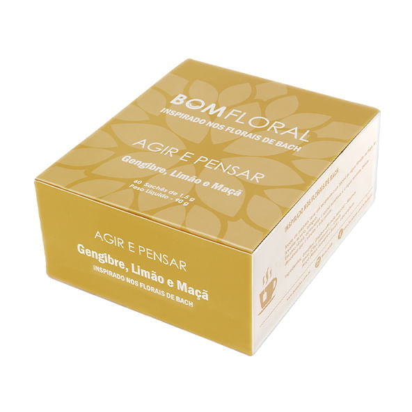 Informações sobre o produto:<br> O Blend Agir e Pensar, da BomFloral, inspirado nos Florais de Bach, contém 60 sachês, é totalmente natural, livre de glúten, conservantes e aromatizantes artificiais. É um mix de ervas com sabores inconfundíveis, saborosos e cuidadosamente selecionados. Com base em gengibre, limão e maçã em perfeita harmonia perfeita harmonia, dão a sensação de leveza, segurança e total liberdade.<br> <br> Recomendação de consumo:<br> Coloque 1 sachê de chá para cada xícara, pode ser preparado em água gelada ou água (não fervente) e deixe em infusão até o sabor e o aroma ficarem a seu gosto.<br> <br> Motivos para escolher esse produto?<br> Com ingredientes naturais<br> Sem conservantes artificiais<br> Sem corantes<br> Selo de qualidade Qualy Ervas<br> Sem aromas artificiais<br> Sem adição de açúcar<br> Sem adoçantes artificiais<br> Não contém glúten<br> Isento de lactose<br> Informações sobre a marca<br> A BomFloral quer unir a delicadeza das plantas, das flores e de suas propriedades, em produtos que transformam o bem estar e dia a dia das pessoas em momentos únicos. Nossa jornada começa com uma linha de chás inspirados nos Florais de Bach – a BomFloral. São sete chás que estão alinhados com os grupos emocionais definidos pelo Dr. Bach.
