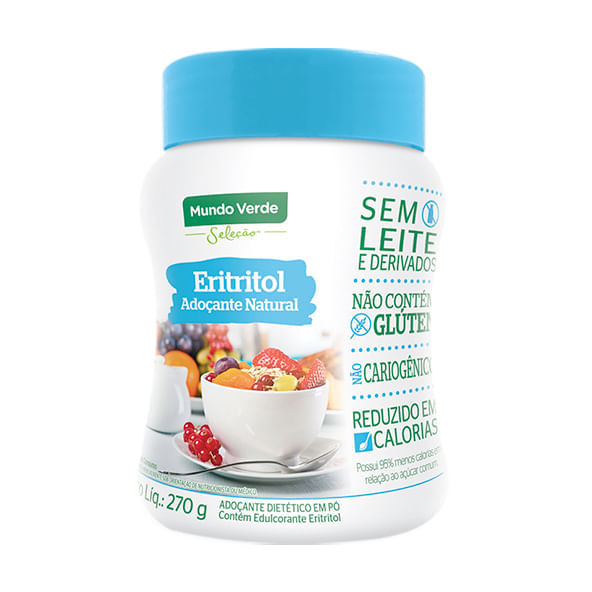 <p>O<strong> Adoçante Natural Eritritol</strong>, da <strong>Mundo Verde Seleção</strong>, é um adoçante de mesa em pó, para uso em bebidas e alimentos. Sugerido para substituir o uso do açúcar refinado para diabéticos ou para dietas com restrição de açúcares, por exemplo. Confere sabor doce aos alimentos e é uma opção menos calórica que o açúcar comum.</p> <h2>Recomendações para consumo:</h2> <p>Uma (1) colher e meia de chá de eritritol equivale a uma (1) colher de chá de açúcar.</p> <h2>Motivos para escolher o produto? </h2> <ul> <li>Sem adição de aroma, corante e conservante</li> <li>Não contém glúten</li> <li>Sem adição de açúcar</li> <li>Isento de leite e derivados</li> <li>Não cariogênico</li> <li>Natural </li> </ul> <h2>A marca: </h2> <p>A Mundo Verde Seleção é uma linha de produtos para quem quer ter uma vida mais saudável e gostosa. A marca quer ajudar a colocar essas escolhas em prática. A paixão e conhecimento pelos alimentos, nutrientes, aromas e sabores permitem a seleção das melhores opções saudáveis para qualquer ocasião. Conheça a linha completa Mundo Verde Seleção, com inúmeros produtos saudáveis e gostosos para facilitar seu dia a dia.</p>