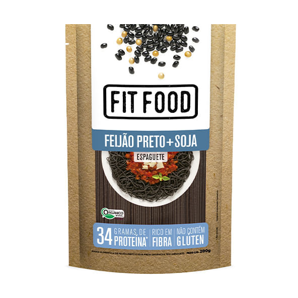 Informações técnicas do produto:<br> O Espaguete de Feijão Preto + Soja, da Fit Food, é uma massa funcional feita com três ingredientes, feijão preto orgânico, soja preta orgânica e água.<br> <br> São utilizados ingredientes 100% naturais, sem glúten, lactose, conservantes e fornece 34g de proteína por porção. Uma ótima opção para os vegetarianos e veganos, pois não há nenhum ingrediente de origem animal.<br> <br> Recomendação de consumo:<br> Experimente com molho vermelho, em saladas e receitas como macarrão ao forno.<br> <br> Por que escolher esse produto?<br> 100% natural<br> Baixo carboidrato<br> Baixo sódio<br> Kosher<br> Isento de glúten<br> Zero lactose<br> Livre de transgênicos<br> Orgânico<br> Rico em proteínas<br> Sem conservantes<br> Vergano<br> Sobre a marca:<br> A Fit Food veio para quebrar a barreira de que os alimentos saudáveis não são saborosos. O objetivo da empresa é oferecer produtos que entreguem saudabilidade, ingredientes de alta qualidade e sabor inigualável nos alimentos. Querem facilitar a vida dos amantes de vida saudável e mostrar aos que buscam ingressar nesse mundo, que é possível se alimentar de forma saudável sem abrir mão do sabor.
