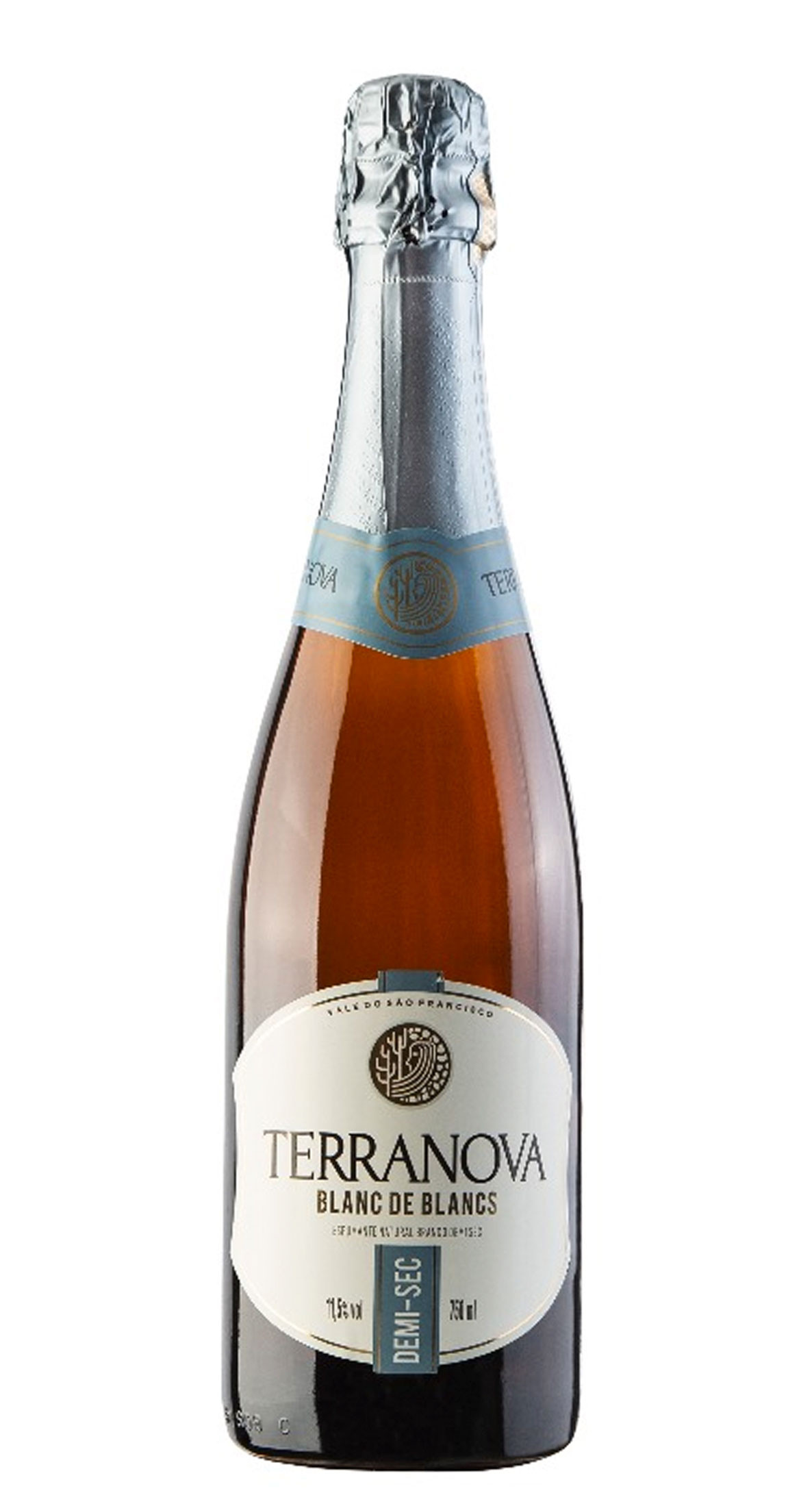 VOCÊ ESTÁ COMPRANDO: ESPUMANTE TERRANOVA BLANC DE BLANCS DEMI-SEC BRANCO 750ML<br /> ORIGEM: BRASIL<br /> <br /> SOBRE O PRODUTO<br /> <br /> Região<br /> Vale do São Francisco / BA<br /> <br /> Tipo<br /> Branco<br /> <br /> Uva<br /> Chenin Blanc, Sauvignon Blanc, Verdejo<br /> <br /> Classificação<br /> Demi-sec<br /> <br /> Temperatura Serviço<br /> 6º a 8ºC<br /> <br /> Método<br /> Charmat<br /> <br /> Visual<br /> Leve intensidade de cor, tonalidade amarelo-esverdeada e perlage fina e persistente.<br /> <br /> Olfativo<br /> Seu aroma ressalta características odoríferas frutadas, mel e algo de especiarias como baunilha.<br /> <br /> Gustativo<br /> Bom frescor, equilíbrio e retrogosto doce e agradável.<br /> <br /> Ideal para acompanhar antepastos, petiscos, suflês doces ou salgados, frutas e sobremesas e doces conventuais.<br /> <br /> Este espumante natural demi-sec é elaborado pelo método Charmat com as uvas Chenin Blanc, Sauvignon Blanc e Verdejo, plantadas em vinhedos próprios na região do Vale do São Francisco, Bahia.