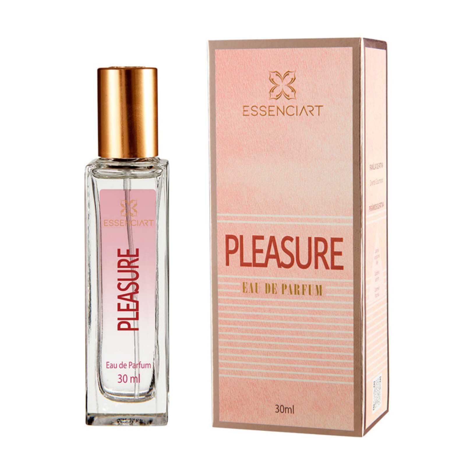 O Perfume Pleasure Essenciart Feminino Eau de Parfum 30ml, é um perfume floral frutal, para mulheres de personalidade forte, que são poderosas, modernas e elegantes.<br /> Nas notas de topo, a laranja sanguínea, a gardênia e o jasmim, remetem à uma suavidade quase infantil.<br /> As notas de coração, deliciosamente compostas pelo mel e pelo caramelo, expressam pura diversão.<br /> Nas notas de fundo, com o patchouli, encerram esta impactante mistura, que exalam toda a sensualidade feminina.CaracterísticasConcentração: Eau de Parfum- EDPFamília Olfativa: Floral, Frutal<br /> <br /> Essenciart segue a nova tendência do mercado internacional voltada a produtos para serem levados na bolsa ou nécessaire, os famosos queridinhos de embalagem pocket.Notas de topo: Laranja sanguínea, Gardênia e JasmimNotas de coração: Mel e CarameloNotas de fundo são: Patchouli Intensidade: Moderada Tempo fixação: Médio Estilo: Para mulheres de espírito livre.Ocasião: Dia e Noite.