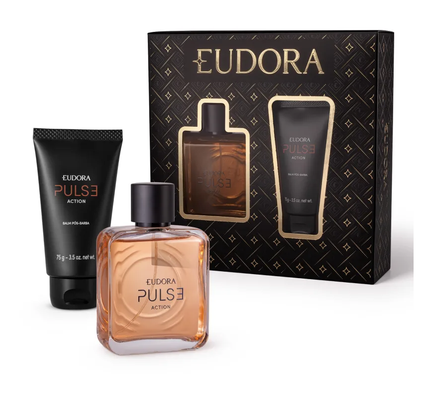 Kit Eudora Pulse Action<br /> Este kit Pulse foi especialmente criado para presentear com afeto e admiração aqueles que nos guiam e inspiram diariamente. A fragrância fresca e envolvente do Desodorante Colônia, unida ao efeito calmante e suavizante do Balm Pós-Barba, vem cuidadosamente embalada por um elegante estojo preto com detalhes em dourado, para celebrar o afeto e criar momentos memoráveis com muito estilo.<br /> <br /> <br /> DESODORANTE COLÔNIA<br /> <br /> <br /> O Pulse Desodorante Colônia é um item da perfumaria masculina de Eudora que vai impulsionar o homem moderno a conquistar todos os seus objetivos. A fragrância traz o frescor estimulante da pimenta preta e das notas frutais, combinados à intensidade da madeira de Vetiver des Sables. Esse desodorante colônia apresenta uma combinação de notas frutais e aromáticas, trazendo toda sua intensidade amadeirada, resultando em uma criação moderna, feita para homens que fazem acontecer. <br /> <br /> <br /> Família olfativa: Amadeirado Aromático<br /> <br /> <br /> BALM PÓS-BARBA<br /> <br /> <br /> Com efeito calmante e suavizante, o Balm Pós-Barba Eudora Pulse Action é ideal para hidratar a pele do seu rosto após o barbear. Sua fórmula vegana proporciona alívio imediato depois de um barbear rente à pele. Além disso, essa loção pós-barba hidrata o rosto e repara danos causados pelo barbear, sem deixar sensação oleosa ou pegajosa. Com toque seco, possui a fragrância amadeirada de Eudora Pulse Action que envolve sua pele com o frescor estimulante da Pimenta Preta e das notas frutais, combinados à intensidade da madeira de Vetiver des Sables.<br /> <br /> <br /> Este kit contém:<br /> <br /> <br /> 01 Desodorante Colônia 100ml<br /> <br /> <br /> 01 Balm Pós-Barba 75g<br /> <br /> <br /> Nenhum produto Eudora é testado em animais, ou seja, este item possui selo Cruelty Free.