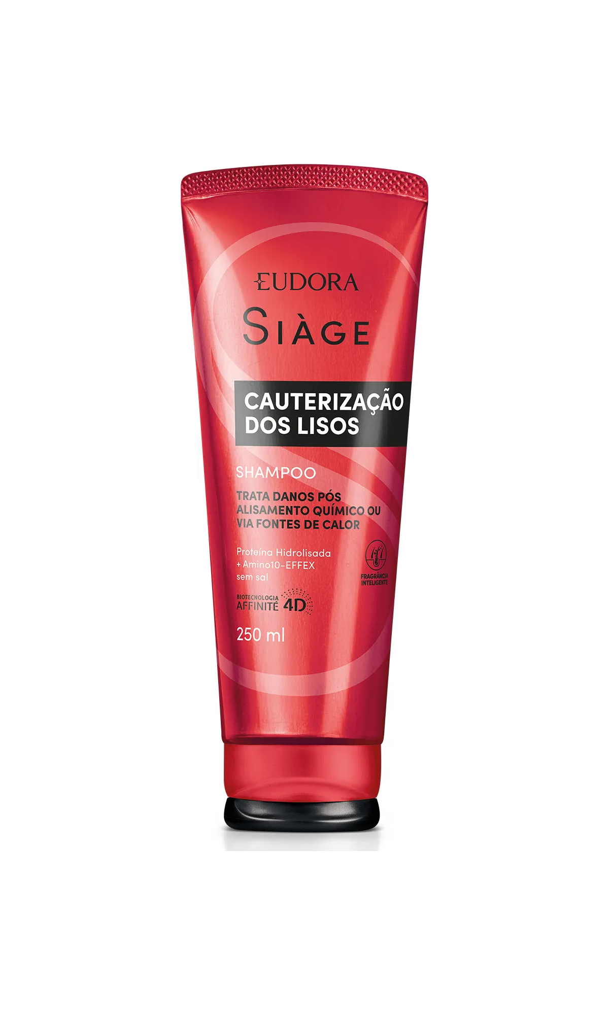 Shampoo Siàge Cauterização dos Lisos 250ml O Shampoo Siàge Cauterização dos Lisos promove limpeza ideal para fios 3x mais lisos, macios e preparados para o tratamento de cauterização, desde o primeiro dia de uso. Sua fórmula é rica em Amino10-effex, um blend exclusivo com 10 tipos diferentes de aminoácidos que fortalecem as fibras capilares e atuam no combate o afinamento das pontas. Além disso, contém Proteína Hidrolisada, que repõe os nutrientes dos fios, garantindo eficiência no tratamento e proteção contra as agressões externas, além de tratar os danos pós alisamento químico ou via fontes de calor, sem deixar a hidratação de lado. O uso da linha completa entrega benefícios para antes e depois do processo de alisamento: Resultados pré química: Recarrega os nutrientes dos fios deixando-os mais fortes; Auxilia na proteção do cabelo pré alisamento. Resultados pós química: Preenche a fibra capilar e garante fios blindados e resistentes para o seu próximo alisamento;Repõe as proteínas essenciais do fio.