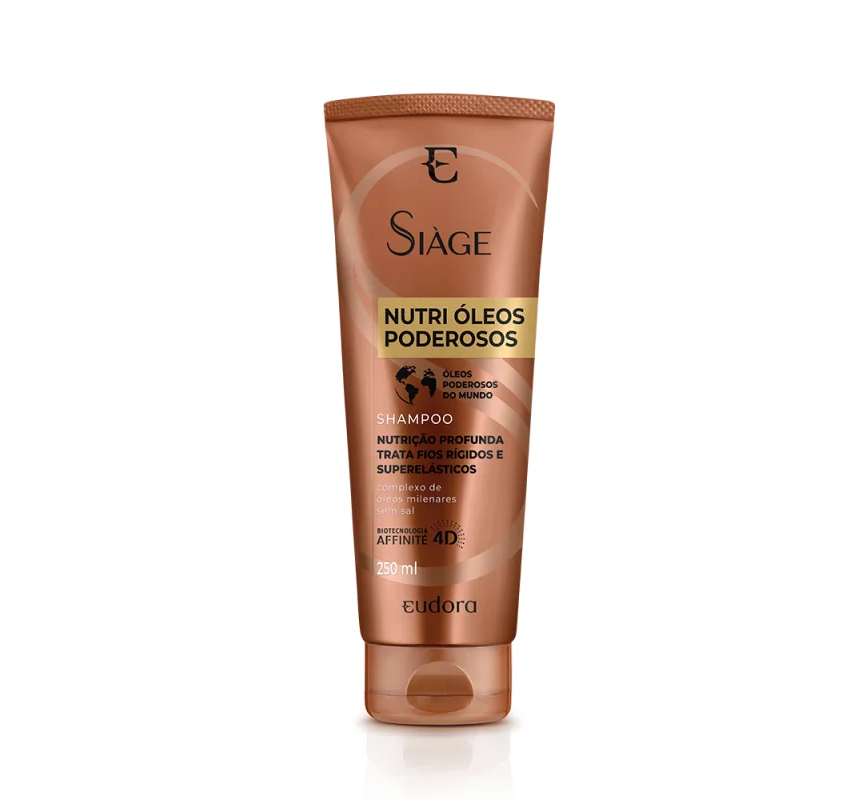 Shampoo Siàge Nutri Óleos Poderosos 250ml<br /> Com a combinação perfeita dos óleos mais poderosos do mundo e a tecnologia exclusiva de nutrição intensa dos cabelos, o Shampoo Siàge Nutri Óleos Poderosos proporciona limpeza profunda aos fios sem ressecar o couro cabeludo, devolvendo o movimento natural dos cabelos com fios livres, leves e soltos.<br />