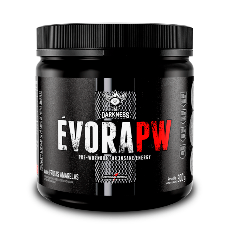 <p>O<strong> Évora Pré Treino Frutas Amarelas Darkness 300g</strong> foi desenvolvido para favorecer a realização de treinos de força de alta intensidade. Sua fórmula contém ingredientes energéticos e neuroestimulantes que prolongam a disposição física e a concentração mental durante os treinos.</p> <p>A combinação dos ativos da fórmula de évora pw criam as condições físicas e mentais adequadas para a realização dos treinos mais intensos que você possa imaginar, retardando exponencialmente o desgaste físico.</p> Sobre os ingredientes: <p>Extrato de malte sem glúten, quinoa tricolor orgânica (Chenopodium quinoa), flocos de arroz, flocos de milho, uva passa, flocos de amaranto orgânico (Amaranthus spp.), melado de cana orgânico, goma acácia orgânica, óleo de girassol, maçã, maca peruana orgânica, emulsificante lecitina de soja e canela em pó.</p> Sugestão de consumo: <p>Diluir 5g (1 dosador) em 200 ml de água de preferência gelada. Consumir uma vez ao dia antes do treino, ou conforme orientação profissional.</p> Motivos para escolher o produto: <ul> <li> <p>Energia extrema</p> </li> <li> <p>Melhora do foco</p> </li> <li> <p>Resistência muscular</p> </li> <li> <p>Redução da fadiga muscular</p> </li> <li> <p>Alta performance</p> </li> </ul>Sobre a marca: <p> <strong>Darkness</strong> nasceu da vivência de atletas de alto desempenho aliada ao respaldo científico e tecnológico da Integralmédica, referência em sports nutrition na América Latina, com 35 anos de tradição. <strong>Darkness</strong> oferece um portfólio variado de suplementos capazes de atender às diversas necessidades dos atletas e praticantes de exercícios de alta intensidade.</p>