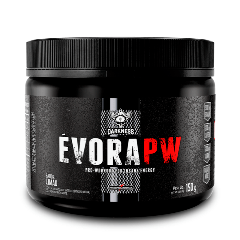 <p>O<strong> Évora Pré Treino Limão Darkness 150g</strong> foi desenvolvido para favorecer a realização de treinos de força de alta intensidade. Sua fórmula contém ingredientes energéticos e neuroestimulantes que prolongam a disposição física e a concentração mental durante os treinos.</p> <p>A combinação dos ativos da fórmula de évora pw criam as condições físicas e mentais adequadas para a realização dos treinos mais intensos que você possa imaginar, retardando exponencialmente o desgaste físico.</p> Sobre os ingredientes: <p>Extrato de malte sem glúten, quinoa tricolor orgânica (Chenopodium quinoa), flocos de arroz, flocos de milho, uva passa, flocos de amaranto orgânico (Amaranthus spp.), melado de cana orgânico, goma acácia orgânica, óleo de girassol, maçã, maca peruana orgânica, emulsificante lecitina de soja e canela em pó.</p> Sugestão de consumo: <p>Diluir 5g (1 dosador) em 200 ml de água de preferência gelada. Consumir uma vez ao dia antes do treino, ou conforme orientação profissional.</p> Motivos para escolher o produto: <ul> <li> <p>Energia extrema</p> </li> <li> <p>Melhora do foco</p> </li> <li> <p>Resistência muscular</p> </li> <li> <p>Redução da fadiga muscular</p> </li> <li> <p>Alta performance</p> </li> </ul>Sobre a marca: <p> <strong>Darkness</strong> nasceu da vivência de atletas de alto desempenho aliada ao respaldo científico e tecnológico da Integralmédica, referência em sports nutrition na América Latina, com 35 anos de tradição. <strong>Darkness</strong> oferece um portfólio variado de suplementos capazes de atender às diversas necessidades dos atletas e praticantes de exercícios de alta intensidade.</p>
