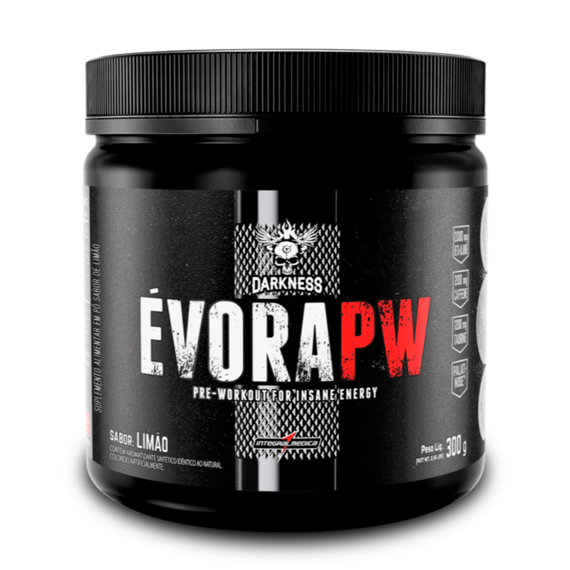 <p>O<strong> Évora Pré Treino Limão Darkness 300g</strong> foi desenvolvido para favorecer a realização de treinos de força de alta intensidade. Sua fórmula contém ingredientes energéticos e neuroestimulantes que prolongam a disposição física e a concentração mental durante os treinos.</p> <p>A combinação dos ativos da fórmula de évora pw criam as condições físicas e mentais adequadas para a realização dos treinos mais intensos que você possa imaginar, retardando exponencialmente o desgaste físico.</p> Sobre os ingredientes: <p>Extrato de malte sem glúten, quinoa tricolor orgânica (Chenopodium quinoa), flocos de arroz, flocos de milho, uva passa, flocos de amaranto orgânico (Amaranthus spp.), melado de cana orgânico, goma acácia orgânica, óleo de girassol, maçã, maca peruana orgânica, emulsificante lecitina de soja e canela em pó.</p> Sugestão de consumo: <p>Diluir 5g (1 dosador) em 200 ml de água de preferência gelada. Consumir uma vez ao dia antes do treino, ou conforme orientação profissional.</p> Motivos para escolher o produto: <ul> <li> <p>Energia extrema</p> </li> <li> <p>Melhora do foco</p> </li> <li> <p>Resistência muscular</p> </li> <li> <p>Redução da fadiga muscular</p> </li> <li> <p>Alta performance</p> </li> </ul>Sobre a marca: <p> <strong>Darkness</strong> nasceu da vivência de atletas de alto desempenho aliada ao respaldo científico e tecnológico da Integralmédica, referência em sports nutrition na América Latina, com 35 anos de tradição. <strong>Darkness</strong> oferece um portfólio variado de suplementos capazes de atender às diversas necessidades dos atletas e praticantes de exercícios de alta intensidade.</p>