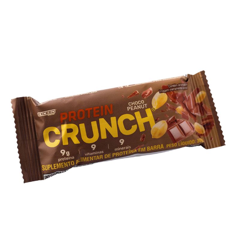 <h2 style="text-align: justify;"><strong>Exceed Protein Crunch Choc Peanut 30G Advanced Nutrition</strong></h2> <h2 style="text-align: justify;">A barra proteica <strong>Exceed Protein</strong> sabor <strong>chocolate com amendoim</strong> foi elaborada com whey protein e colágeno, contém 9g de proteína e é enriquecida com vitaminas e minerais, que promovem um produto de boa composição nutricional. Seu sabor irresistível é garantido por uma generosa cobertura de chocolate ao leite e recheio de amendoim com crispies de soja, que dão um toque final de crocância.</h2> <h2 style="text-align: justify;"><strong>Sobre os ingredientes:</strong></h2> <h2 style="text-align: justify;"><strong>ALÉRGICOS: Contém derivados de leite e soja. Pode conter avelã, amendoim, castanha do Pará e derivados de ovo. Contém lactose.</strong><strong><br /></strong>Não contém glúten.</h2> <h2 style="text-align: justify;"><strong>Sugestão de consumo:</strong></h2> <h2 style="text-align: justify;">Uma boa opção de snack proteico e saboroso. Prático para ser consumido no pós treino ou até mesmo em lanches intermediários em dias mais corridos. Pode te acompanhar em qualquer lugar.</h2> <h2 style="text-align: justify;"><strong>Motivos para escolher o produto:</strong></h2> <ul style="text-align: justify;"> <li> <h2>9g de proteína;</h2> </li> <li> <h2>Enriquecido com vitaminas e minerais;</h2> </li> <li> <h2>Adição de colágeno;</h2> </li> <li> <h2>Sem glúten.</h2> </li> </ul> <h2 style="text-align: justify;"> </h2> <h2 style="text-align: justify;"><strong>A Marca</strong></h2> <h2 style="text-align: justify;">A Advanced Nutrition é uma empresa carioca que foi fundada em 1987. Sempre em busca de qualidade e inovação, se diferenciou no mercado por seus produtos desenvolvidos e fabricados somente com ingredientes de alta qualidade, sendo a primeira indústria de alimentos saudáveis do Brasil certificada em Boas Práticas de Fabricação (<em>GMP – Go</em><em>od Manufacturing Practices)</em>.</h2> <h2 style="text-align: justify;"> </h2>