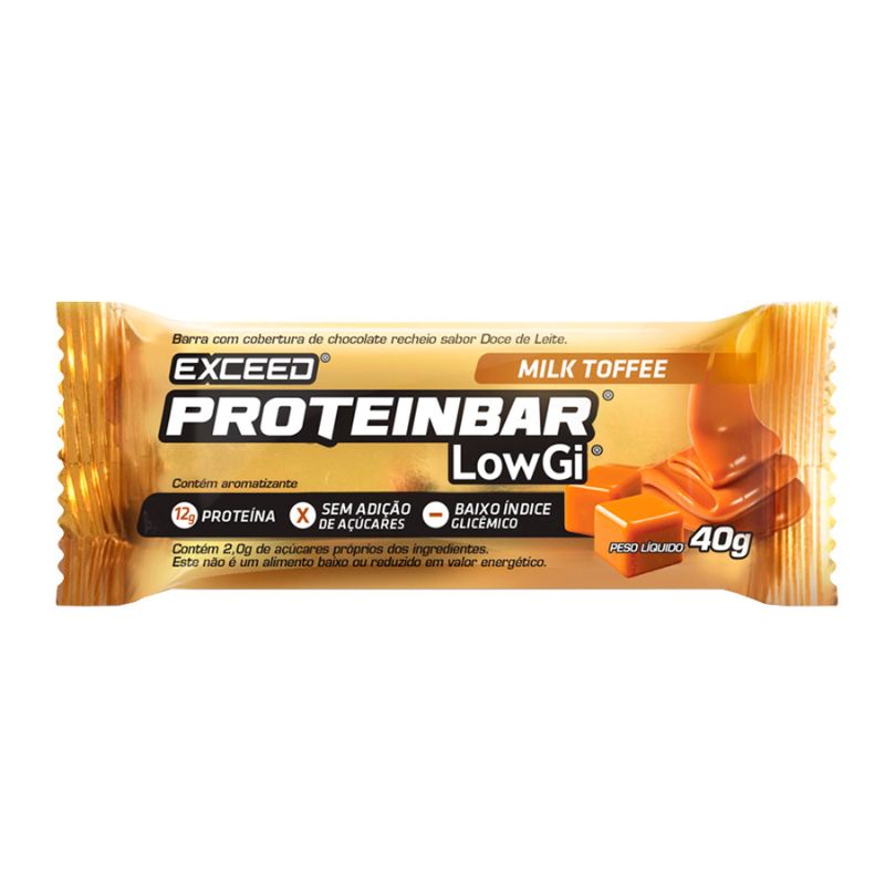 <h2 style="text-align: justify;"><strong>Exceed Proteinbar Lowgi Milk Toffee 40G Advanced Nutrition</strong></h2> <h2 style="text-align: justify;">A barra proteica <strong>Exceed Proteinbar LowGi</strong> sabor <strong>milk toffee</strong> é uma opção de snack com baixo índice glicêmico. Ela foi elaborada com uma combinação de whey protein, proteína isolada de soja e colágeno hidrolisado, fornecendo 13g de proteína e 3,1g de fibra. Tudo isso unido à uma explosão de sabor.</h2> <h2 style="text-align: justify;"><strong>Sobre os ingredientes:</strong></h2> <h2 style="text-align: justify;"><strong>ALÉRGICOS: Contém derivados de leite e soja. Pode conter avelã, amendoim, castanha do Pará e derivados de ovo.</strong><strong><br /></strong>Não contém glúten.</h2> <h2 style="text-align: justify;"><strong>Sugestão de consumo:</strong></h2> <h2 style="text-align: justify;">Uma boa opção de snack proteico e saboroso. Prático para ser consumido no pós treino ou até mesmo em lanches intermediários em dias mais corridos. Pode te acompanhar em qualquer lugar.</h2> <h2 style="text-align: justify;"><strong>Motivos para escolher o produto:</strong></h2> <ul style="text-align: justify;"> <li> <h2>13g de proteína;</h2> </li> <li> <h2>Baixo índice glicêmico;</h2> </li> <li> <h2>Rico em fibra;</h2> </li> <li> <h2>Adição de colágeno;</h2> </li> <li> <h2>Sem glúten;</h2> </li> <li> <h2>Sem açúcar.</h2> </li> </ul> <h2 style="text-align: justify;"> </h2> <h2 style="text-align: justify;"><strong>A Marca</strong></h2> <h2 style="text-align: justify;">A Advanced Nutrition é uma empresa carioca que foi fundada em 1987. Sempre em busca de qualidade e inovação, se diferenciou no mercado por seus produtos desenvolvidos e fabricados somente com ingredientes de alta qualidade, sendo a primeira indústria de alimentos saudáveis do Brasil certificada em Boas Práticas de Fabricação (<em>GMP – Go</em><em>od Manufacturing Practices)</em>.</h2> <h2 style="text-align: justify;"> </h2>