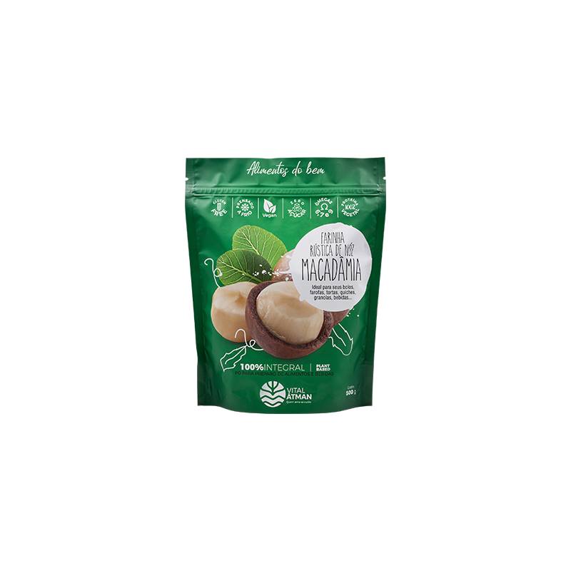 <p>A <strong>Farinha de noz de Macadâmia Vital Âtman, </strong>é obtida através da prensagem a frio da Noz de Macadâmia, que além de possuir um sabor delicioso, contém nutrientes como ômegas, proteínas vegetais e é isenta de aditivos químicos. </p> <h2><strong>Sugestão de consumo:</strong></h2> <p>Pode ser utilizada no preparo de alimentos e bebidas de sua preferência ou conforme recomendação do médico ou nutricionista.</p> <h2><strong>Motivos para escolher o produto:</strong></h2> <ul> <li> <p>Farinha obtida através da prensagem a frio da noz de Macadâmia; </p> </li> <li> <p>Opção de farinha low carb; </p> </li> <li> <p>Contém mais de 3g de Ômega 9; </p> </li> <li> <p>1g de Ômega 7; </p> </li> <li> <p>100mg de Ômega 6; </p> </li> <li> <p>3g de proteína;</p> </li> <li> <p>Sem corantes e aromatizantes artificiais; </p> </li> <li> <p>Sem adição de açúcar e adoçantes. </p> </li> </ul> <h2><strong>A Marca</strong></h2> <p>A <strong>Vital Âtman</strong>, há 26 anos inspirando você a se cuidar, tem como missão desenvolver produtos inovadores, com ativos naturais e que tragam eficácia e oferecer serviços exclusivos para conscientização do ser integral e do amor-próprio. Sem deixar de lado nossos valores, com a ética, inovação, integridade, transparência, visão colaborativa, olhar para o cliente, consciência com o planeta e amor.</p> <p> </p>
