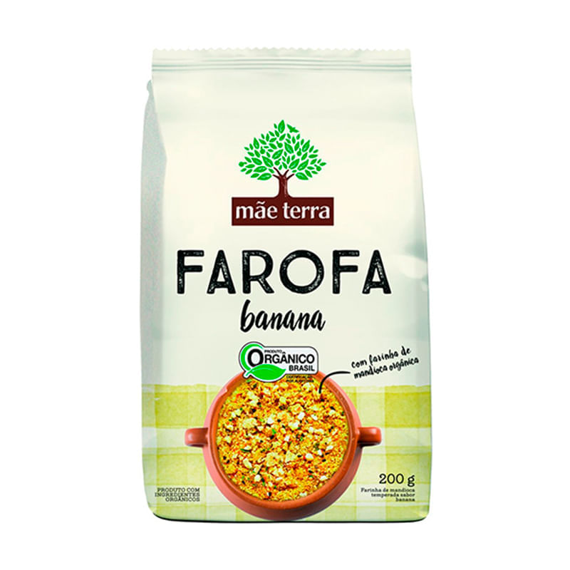 <p>Informações técnicas do produto:<br>A Farofa Orgânica Banana, da Mãe Terra, 200 g, é um alimento versátil, feita com farinha de mandioca. É flocada e produzida em processo artesanal, a deixando com textura mais grossa e crocante, com pedacinhos de banana de verdade. Além disso, o produto possui o selo de alimento orgânico.<br>Sobre os ingredientes:<br>Farinha de Mandioca: Rica em ferro, cálcio, potássio, magnésio e vitamina B6.<br>Banana: Rica em fibras, potássio, vitaminas C e A.<br>Recomendação de consumo:<br>Ideal para ser adicionada como complemento as refeições ou adicionada em preparações.<br>Por que escolher esse produto?<br>48% menos sódio<br>Livre de agrotóxicos<br>Fonte de fibras<br>Orgânica<br>Sobre a marca:<br>Fundada em 1979, a Mãe Terra surgiu com a proposta de trazer alimentos mais naturais e saudáveis para seus consumidores. Minimamente processados, esses alimentos são ricos em nutrientes como vitaminas, minerais, fibras e proteínas, importantes para o funcionamento do nosso organismo.</p>
