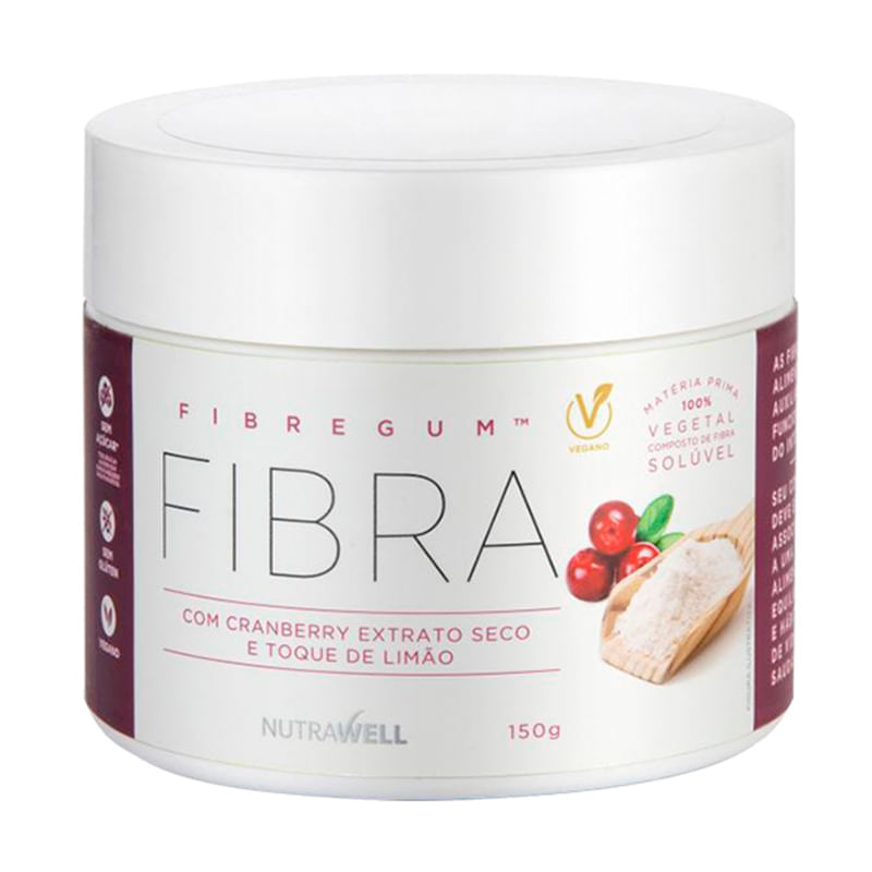 <p>O <strong>Fibra com Cranberry Nutrawell 150g</strong>, é composta por Fibregum B®, uma fibra prebiótica de origem 100% vegetal e purificada a partir da goma acácia, extraída de forma sustentável, com adição do extrato seco de Cranberry.</p> <p>Produto vegano, sem glúten, livre de corantes, aromatizantes ou conservantes artificiais.</p> Sugestão de consumo: <p>Adicione 1 scoop (5g) do produto na água ou em seu suco preferido.</p> Motivos para escolher o produto: <ul> <li> <p>Sem glúten</p> </li> <li> <p>Sem lactose</p> </li> <li> <p>Vegano</p> </li> <li> <p>Sem açúcar</p> </li> <li> <p>3,9 g de fibras na porção</p> </li> <li> <p>250 mg de extrato seco de Cranberry</p> </li> </ul> Sobre a marca: <p>A <strong>Nutrawell</strong> desenvolve uma linha de produtos inovadores através de aditivos funcionais e estéticos, pensando numa alimentação equilibrada, e com o objetivo de que seus clientes tenham uma qualidade de vida mais saudável. A marca constantemente busca trazer novidades e deseja o bem-estar do consumidor, por isso seus produtos são isentos de glúten, não contém lactose e não recebem adição de açúcar, corantes ou conservantes.</p>