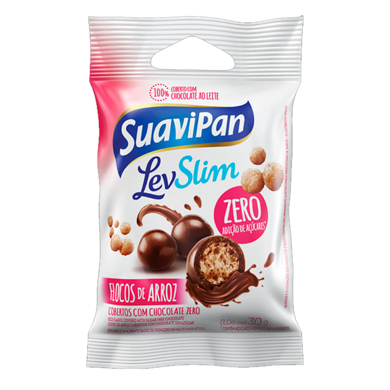 <p><strong>Flocos de arroz drageado coberto com chocolate ao leite zero, 40g, Suavipan </strong>são formulados sem adição de açúcar e sem glúten, cobertos com 100% de chocolate ao leite. São ideais para aqueles momentos de vontade de comer doces.</p> <strong>Alérgicos:</strong> <p>Contém derivados de leite e de soja. Pode conter amêndoas, amendoim e avelã. Não contém glúten.</p> <strong>Recomendação de consumo:</strong> <p>Ideal para ser consumido a qualquer hora do dia, como uma opção de lanche.</p> <strong>Por que escolher esse produto: </strong> <ul> <li>Sem gorduras trans</li> <li>Com cacau</li> <li>Sem adição de açúcar</li> <li>Fonte de fibras</li> <li>Com chocolate ao leite</li> </ul> Sobre a marca: <p>A Suavipan foi fundada na cidade de São Paulo em 1998 e, desde então, se empenha em desenvolver e fabricar os melhores e mais saudáveis alimentos em sua categoria. Para isso, trabalha com as mais seletas matérias-primas. </p> <p></p> <p>Possui quatro linhas distintas de produtos, comercializadas em todo o Brasil. A linha zero adição de açúcares, a de produtos orgânicos, de produtos Integrais e a linha LevSlim.</p>