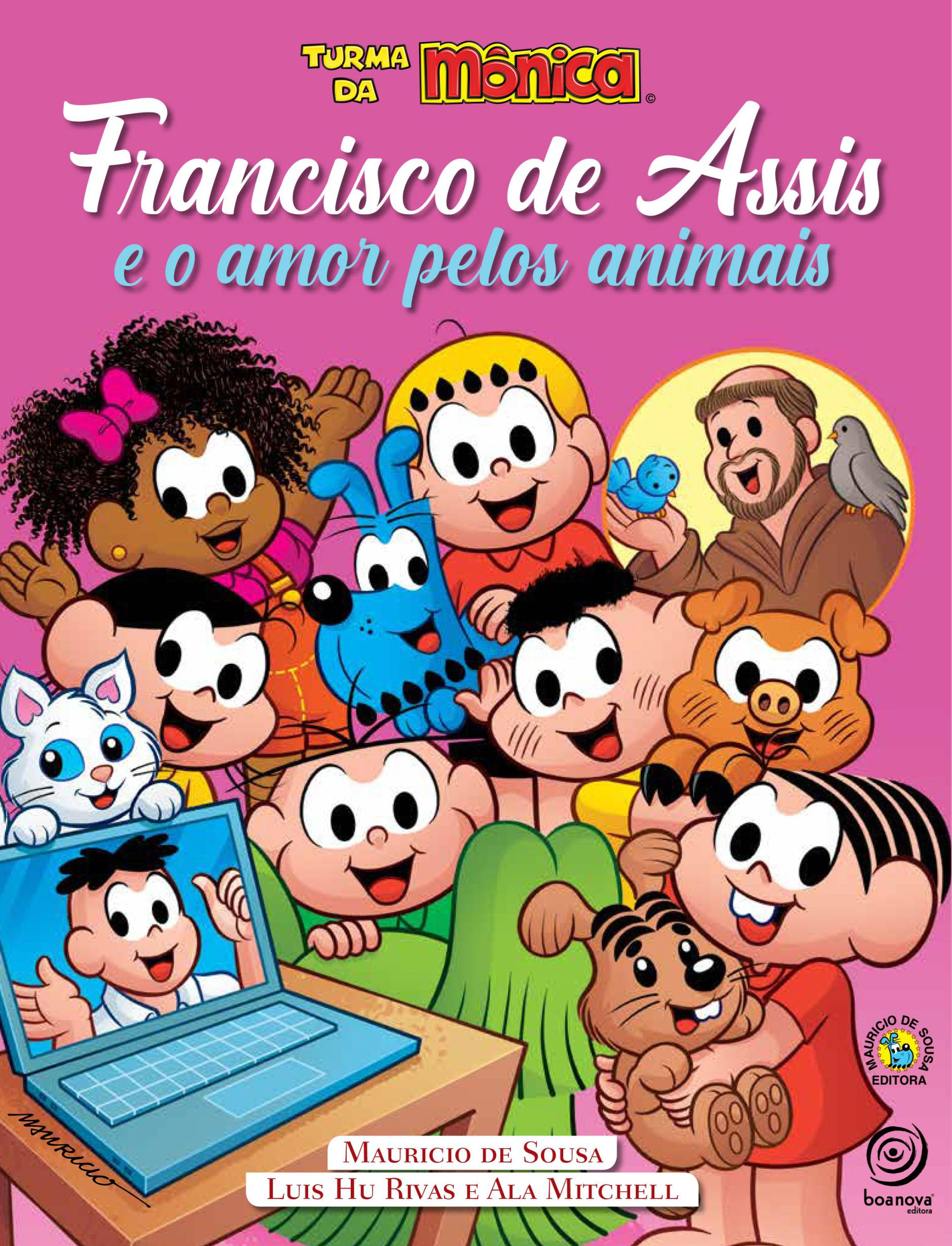Neste livro, a Turma da Mônica faz uma live com André, primo do Cascão, apresentando para as crianças as mais belas lições de Francisco de Assis, que todos podemos usar em nosso dia a dia. Francisco de Assis e o amor pelos animais traz lindas historinhas com nossos irmãos bichinhos, contadas de forma divertida com os personagens mais queridos do Brasil.