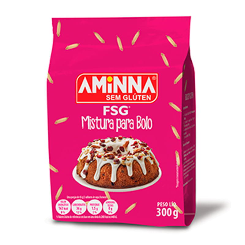 A FSG® Mistura para bolo sem glúten, da Aminna, 300g, é feita com apenas 3 ingredientes - farinha de arroz, de milho e de mandioca - para substituir a farinha de trigo em bolos ou outras preparações que desejar. O mix não possui adição de açúcar ou ovos, é livre de glúten e lactose.