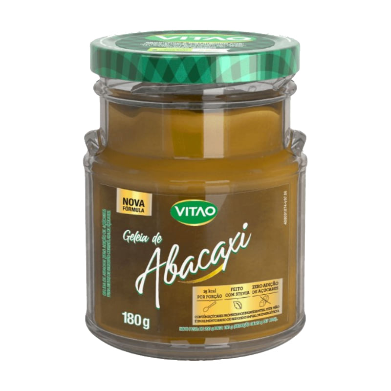 <p dir="ltr">A <strong>Geleia Sabor Abacaxi da Vitao</strong> é zero açúcar, adoçada com um blend de adoçantes. Sua composição conta com a fruta in natura e a polpa do abacaxi, é um produto vegano e sem glúten, além de possuir menos calorias quando comparada a tradicional.</p> <h2> </h2> <h2 dir="ltr">Sobre os ingredientes:</h2> <p dir="ltr"><strong>Abacaxi</strong>: fruta cítrica rica em vitamina C e antioxidantes.</p> <p dir="ltr"><strong>Stévia:</strong> adoçante natural, feito 100% a base de plantas e zero calorias.</p> <p> </p> <h2 dir="ltr">Sugestão de consumo:</h2> <p dir="ltr">É uma opção deliciosa e saudável para passar no pão/torrada ou fazer parte de receitas.</p> <p> </p> <h2 dir="ltr">Motivos para escolher o produto:</h2> <ul> <li dir="ltr"> <p dir="ltr">Sem adição de açúcares;</p> </li> <li dir="ltr"> <p dir="ltr">Sem glúten e sem lactose;</p> </li> <li dir="ltr"> <p dir="ltr">Vegano;</p> </li> <li dir="ltr"> <p dir="ltr">Feito com a fruta;</p> </li> <li dir="ltr"> <p dir="ltr">Baixo em calorias.</p> </li> </ul> <h2 dir="ltr">A Marca:</h2> <p dir="ltr">Buscando ser referência no mercado de alimentos saudáveis, a Vitao Alimentos foi fundada em 1988. Inicialmente a empresa contava com um portfólio voltado a dieta macrobiótica, e ao longo dos anos foi ampliando a oferta de produtos, seguindo as tendências do segmento de alimentos saudáveis, e atualmente possuem uma linha completa, com opções sem adição de açúcar e sem glúten. </p>