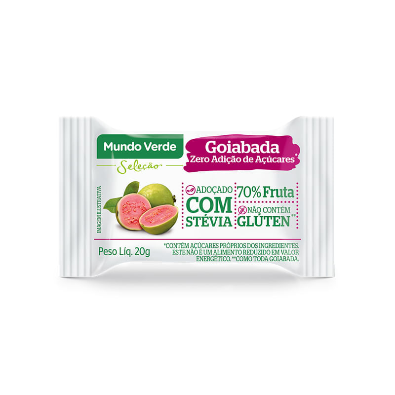 Informações técnicas do produto:<br>_x000D_ O Goiabada zero Mundo Verde Seleção, é um doce feito com 70% de polpa de goiaba, sem adição de açúcar, livre de glúten, aromatizantes e corantes artificiais. Uma alternativa de sobremesa saudável e rica em fibras. Adoçado com Stévia, um adoçante natural. <br>_x000D_ <br>_x000D_ Alérgicos:<br>_x000D_ Pode conter leite.<br>_x000D_ <br>_x000D_ Recomendação de consumo:<br>_x000D_ Ótima opção de doce ou sobremesa saudável e pratica para ser consumida em momentos do dia. <br>_x000D_ <br>_x000D_ Motivos para escolher esse produto?<br>_x000D_ Sem glúten<br>_x000D_ 2 g de fibras<br>_x000D_ 70% de Fruta<br>_x000D_ Sem maltodextrina<br>_x000D_ Sem aromatizantes e corantes artificiais<br>_x000D_ Informações sobre a marca:<br>_x000D_ A Mundo Verde Seleção é uma linha de produtos para quem quer ter uma vida mais saudável e gostosa. A marca quer ajudar a colocar essas escolhas em prática. A paixão e conhecimento pelos alimentos, nutrientes, aromas e sabores permitem a seleção das melhores opções saudáveis para qualquer ocasião. Conheça a linha completa Mundo Verde Seleção, com inúmeros produtos saudáveis e gostosos para facilitar seu dia a dia.