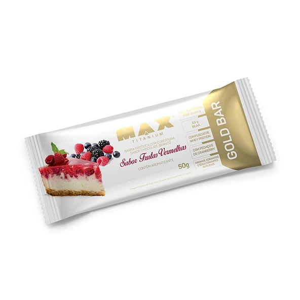 Informações técnicas do produto: <br> A Gold Bar Frutas Vermelhas, da Max Titanium, contém 50g, é uma nova alternativa de snack proteico altamente nutritivo. Contendo em sua composição ingredientes da mais alta qualidade, dentre eles: fontes proteicas que possuem em sua composição aminoácidos essenciais.<br> <br> Recomendação de consumo: <br> Pode ser utilizado no pré ou pós-treino.<br> <br> Informações para alérgicos:<br> Contém lactose e leite.<br> <br> Por que escolher esse produto?<br> Proporciona entre 3,8 g a 4,0 g de BCAA por barra<br> Contém aromas naturais<br> Adoçantes naturais taumatina e estévia<br> Não contém glúten<br> Não contém gorduras trans<br> Sobre a marca:<br> A Max Titanium, é a marca de suplementos nutricionais e alimentares do Supley Laboratório, que desde o ano 2006 vem crescendo e ganhando mercado nacional e internacional graças a altíssima qualidade dos seus produtos, sendo reconhecida perante consumidores e lojistas como uma marca com alto padrão de qualidade. Realiza investimentos crescentes em pesquisas, equipamentos de última geração e profissionais que se aprimoram em busca de inovações e qualidade para o mercado, desenvolvendo uma linha completa de suplementos alimentares voltados à diversos segmentos.